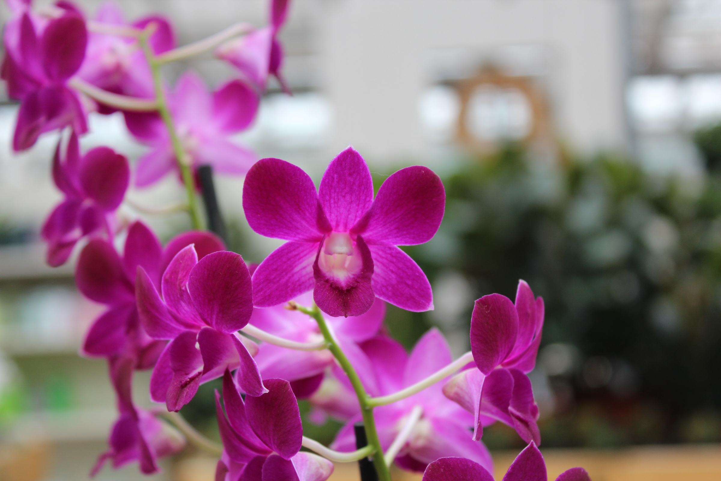 Das helle Badezimmer ist für die sonst etwas empfindsamen Orchideen ideal. Die hohe Luftfeuchtigkeit führt bei diesen Tropenpflanzen zu üppigem Wuchs und farbenfrohen Blüten. Ein willkommener Farbtupfer in sterilen Badezimmern.