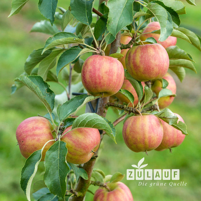 - Die mittelgrossen Früchte Früchte haben eine gelbe Grundfarbe mit auffälligen roten Streifen. Das weisse Fruchtfleisch ist saftig und schmeckt süsssäuerlich-aromatisch. Die Erntezeit ist von September bis Anfang Oktober. Direkt vom Baum ist der Apfel meist noch nicht optimal ausgereift. Seine volle Genussreife erreicht er ab Oktober, er ist dann im Naturlager bis Februar haltbar.