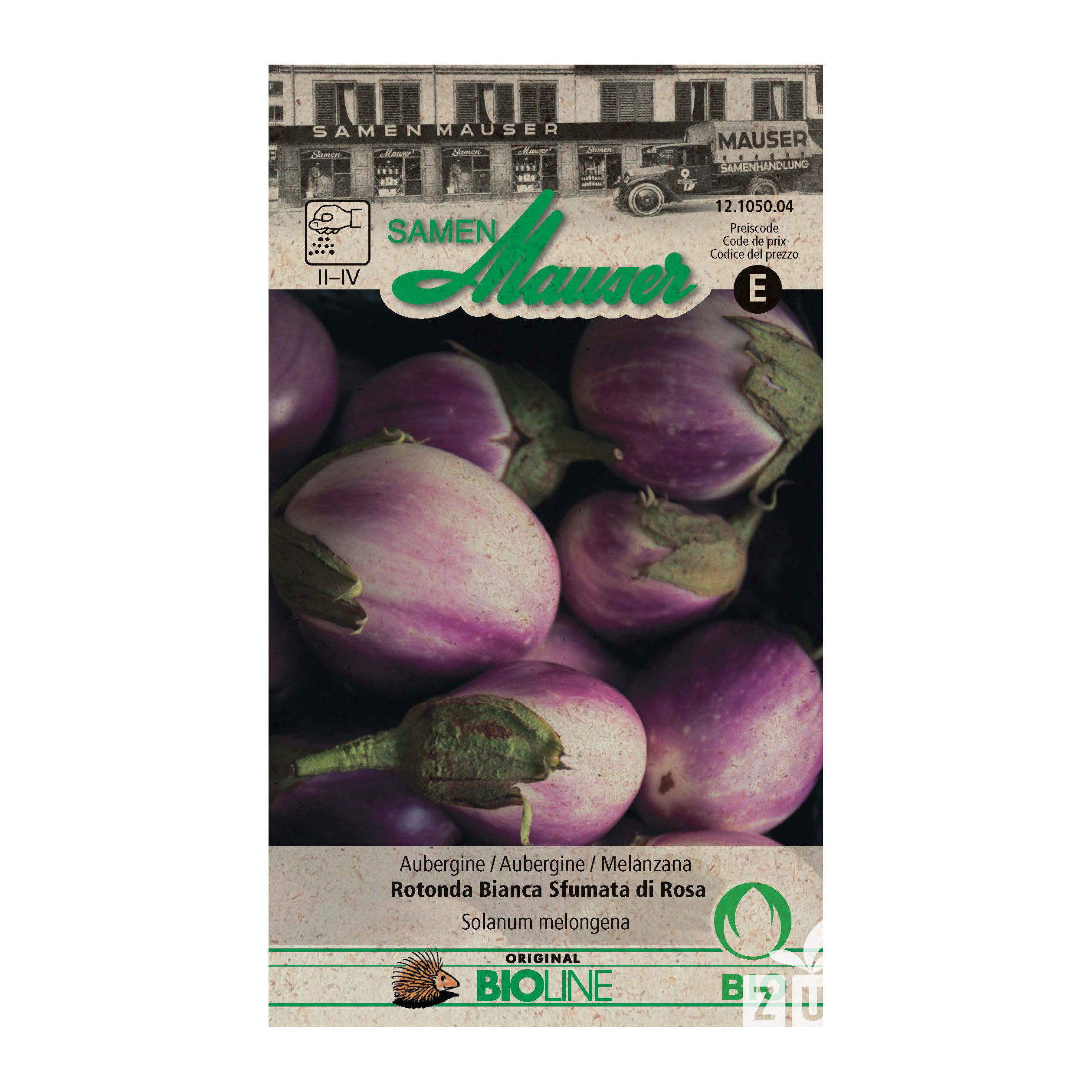 Die Aubergine 'Rotonda Bianca Sfumata di Rosa' (Solanum melongena) ist eine ertragreiche und wüchsige Sorte. Die Früchte sind hell/rosa und haben ein festes Fruchtfleisch mit wenig Samen. Sie kann von Februar bis April in einer Saatschale vorgezogen werden. Die Keimdauer beträgt 6 - 14 Tage bei konstanten Temperaturen von 15 - 18 °C. Ab Mitte Mai kann sie ins Freiland mit einem Abstand von 75 cm x 50 cm gesetzt werden. Dabei ist es wichtig die Pflanzen gut zu bewässern und sie mit ausreichend Kompost oder Dünger zu versorgen. Sie sind sehr wärmebedürftig und eignen sich hervorragend für die Kultur unter Glas oder Folie. Geerntet werden können sie zwischen Juli und Oktober.
