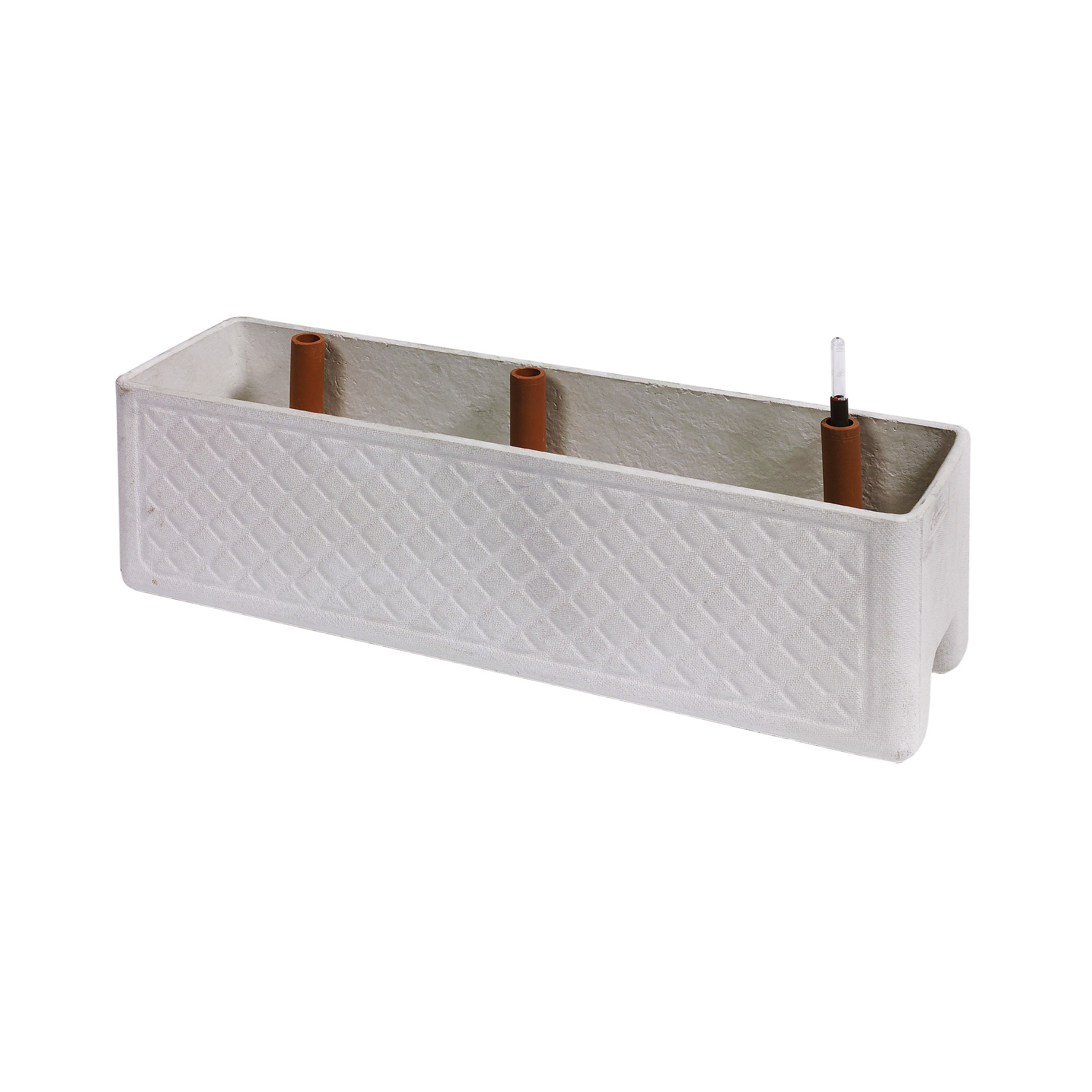 Balconia Réservoir ist ein beständiger, langer Blumentopf in zeitlosem Grau, ohne Abfluss, dafür mit Giessanzeige. Diese Balkonkiste ist witterungsbeständig und unverwüstlich. Balconia Réservoir überzeugt mit klassischem Rautenmuster und besteht aus robustem Faserzement. Dieser Schweizer Qualitäts-Blumentopf ist vollständig rezyklierbar und wird von Hand hergestellt. Das graue Pflanzengefäss ist atmungsaktiv, feuchtigkeitsregulierend und bei sachgemässer Handhabung frostsicher. Ein bewährtes, langlebiges Produkt für alle, die keinen Unterteller verwenden wollen.