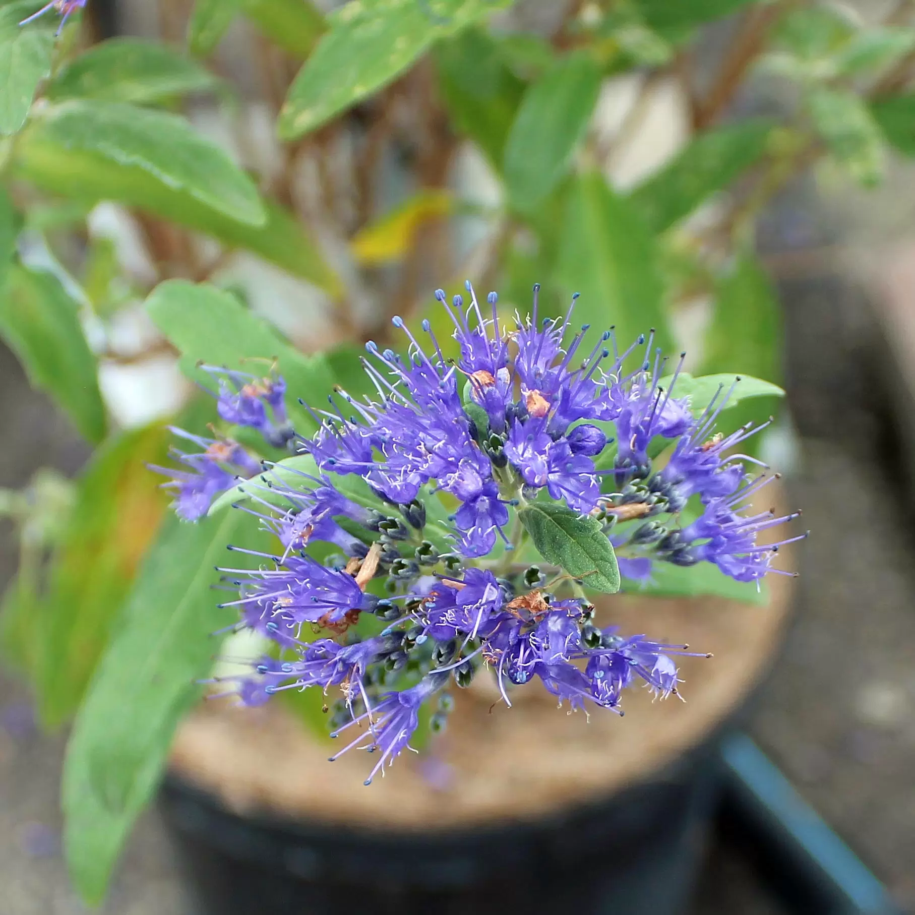 Bei der Bartblume (Caryopteris x clandonensis 'Grand Bleu'®) handelt es sich um ein spätblühendes Kleingehölz mit duftendem Laub, das an trocken-heissen Standorten wächst. Da die Bartblume am neuen Holz blüht, sollte sie jedes Jahr im zeitigen Frühjahr zurückgeschnitten werden.