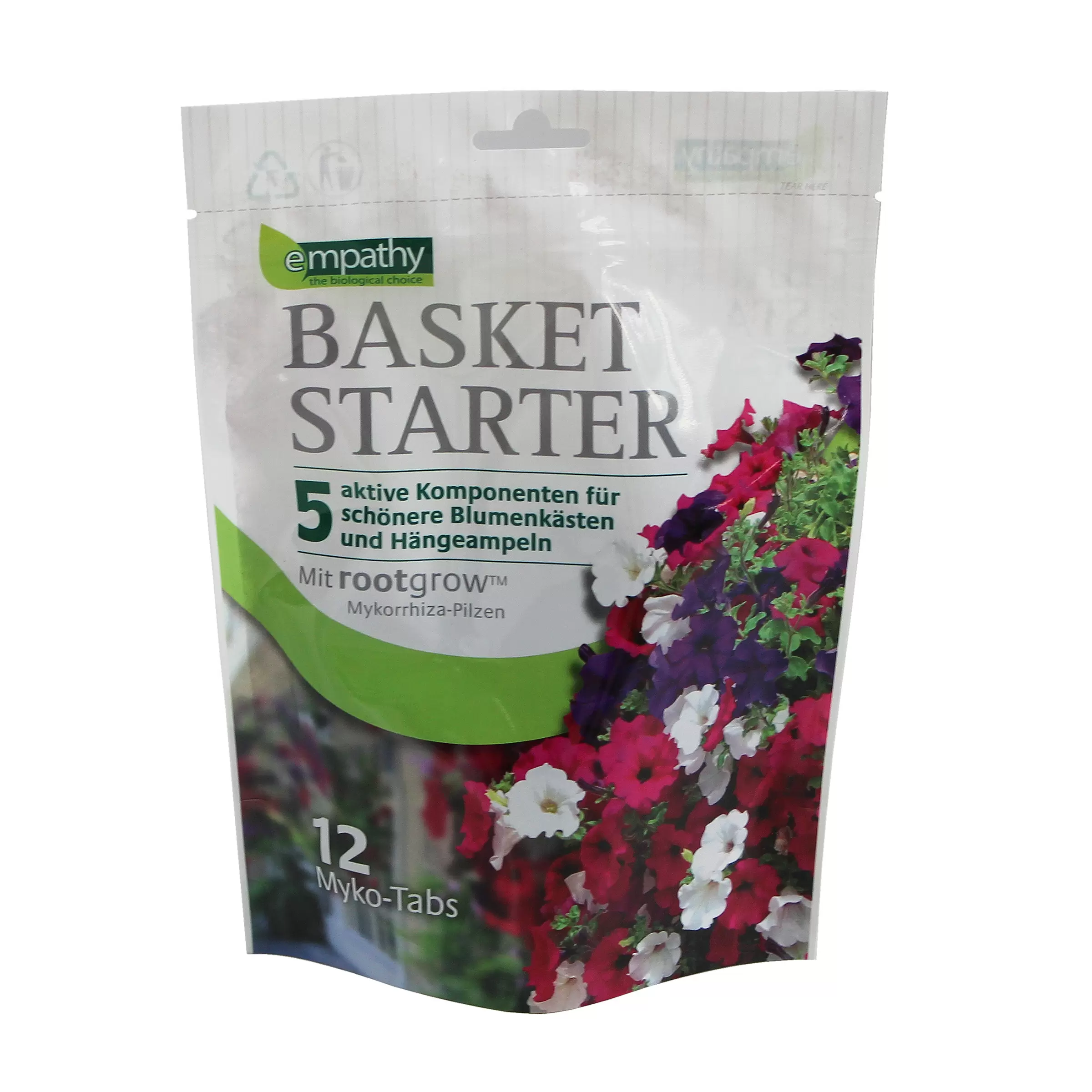 Die im Empathy Basket Starter enthaltenen Myko-Tabs ermöglichen Ihren Blumenkästen und Hängeampeln einen perfekten Start in die Saison. Die getrockneten Tabs quellen beim Giessen der Pflanze um das fünffache auf und enthalten nützliche Mikroorganismen. Während vier Monaten werden zusätzliche Nährstoffe abgegeben.