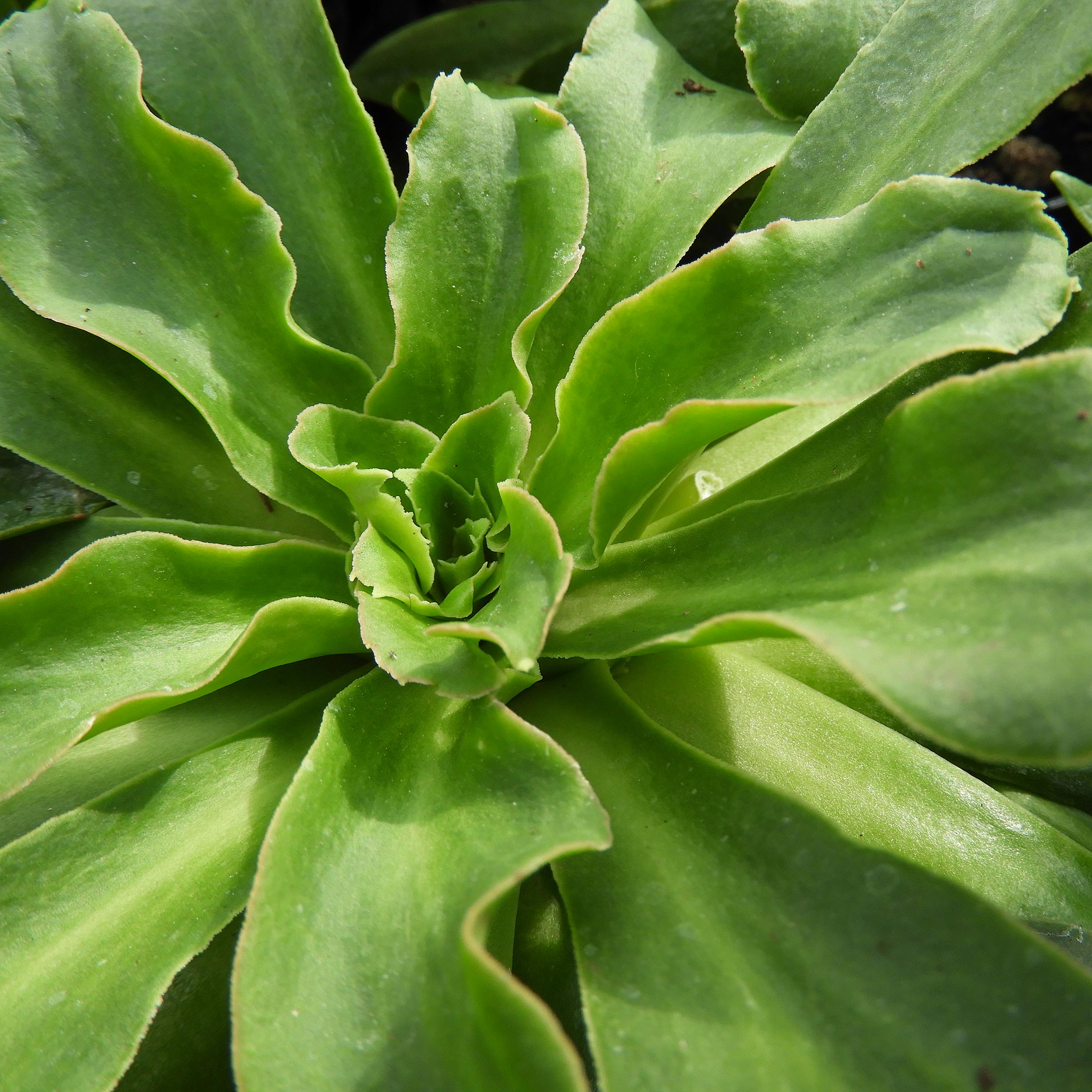 - Die Blätter sind dunkelgrün, fleischig und in Rosetten angeordnet.