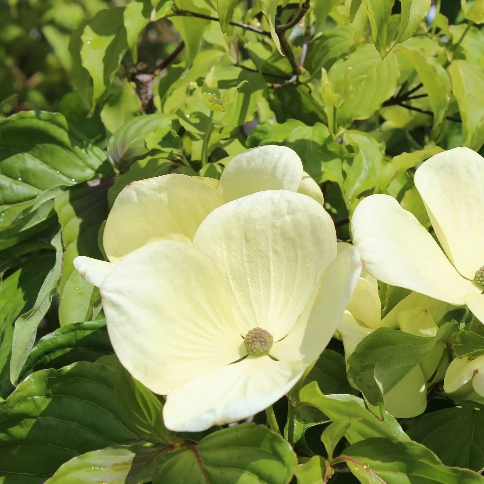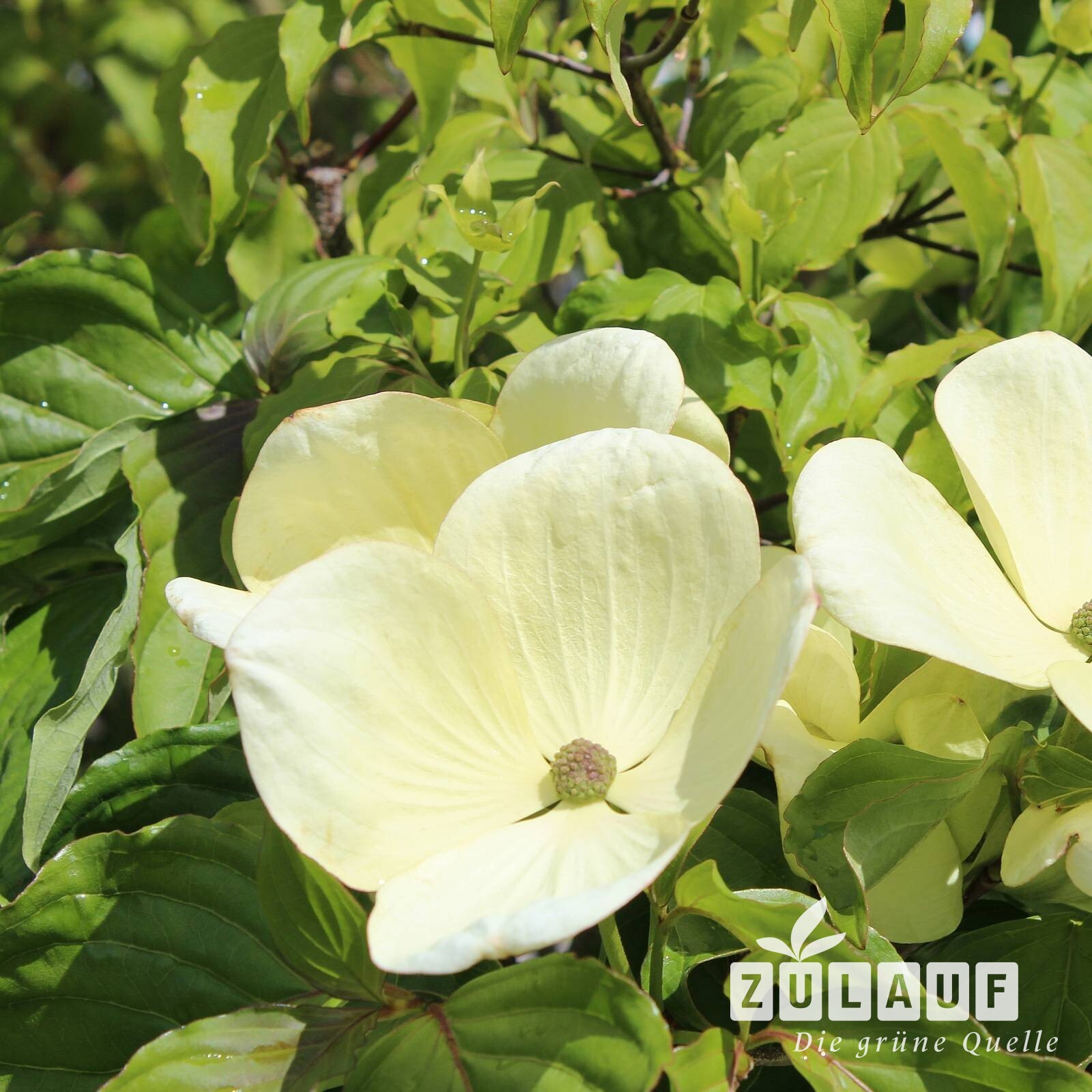 Der sommergrüne Grossstrauch Cornus 'Venus' hat einen aufrechten Wuchs. Die grünlich-weissen Blüten erscheinen im Mai/Juni und sind ein echter Hingucker. Das aparte Blattkleid zeigt sich in einem frischen grün. Im Herbst trägt er rote Früchte und die Blätter färben sich in ein herrliches rot.
