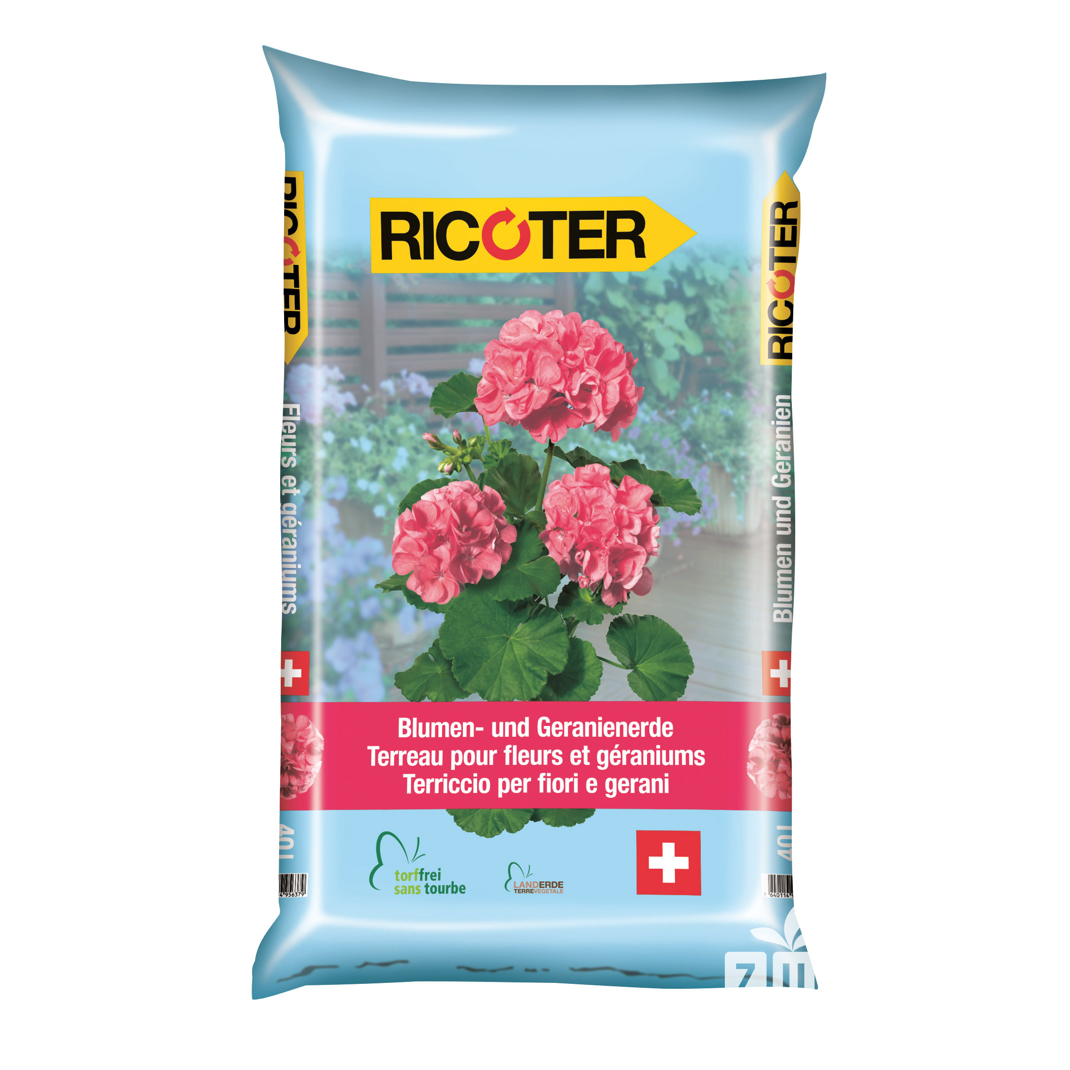 Ricoter Blumen- und Geranienerde eignet sich hervorragend zum Ein- und Umtopfen von Geranien, Blumen und anderen Balkonpflanzen. Aufgrund der hohen Nährstoffreserven, die bis zu 4 Wochen halten, eignet sie sich für Geranien und andere Pflanzen mit mittlerem bis hohem Nährstoffbedarf. Die Blumen- und Geranienerde ist auch optimal zum Befüllen von Balkonkisten und grösseren Pflanzengefässen geeignet. Durch einen optimalen pH-Wert in der Erde wird das Pflanzenwachstum und die Nährstoffverfügbarkeit und -aufnahme verbessert.