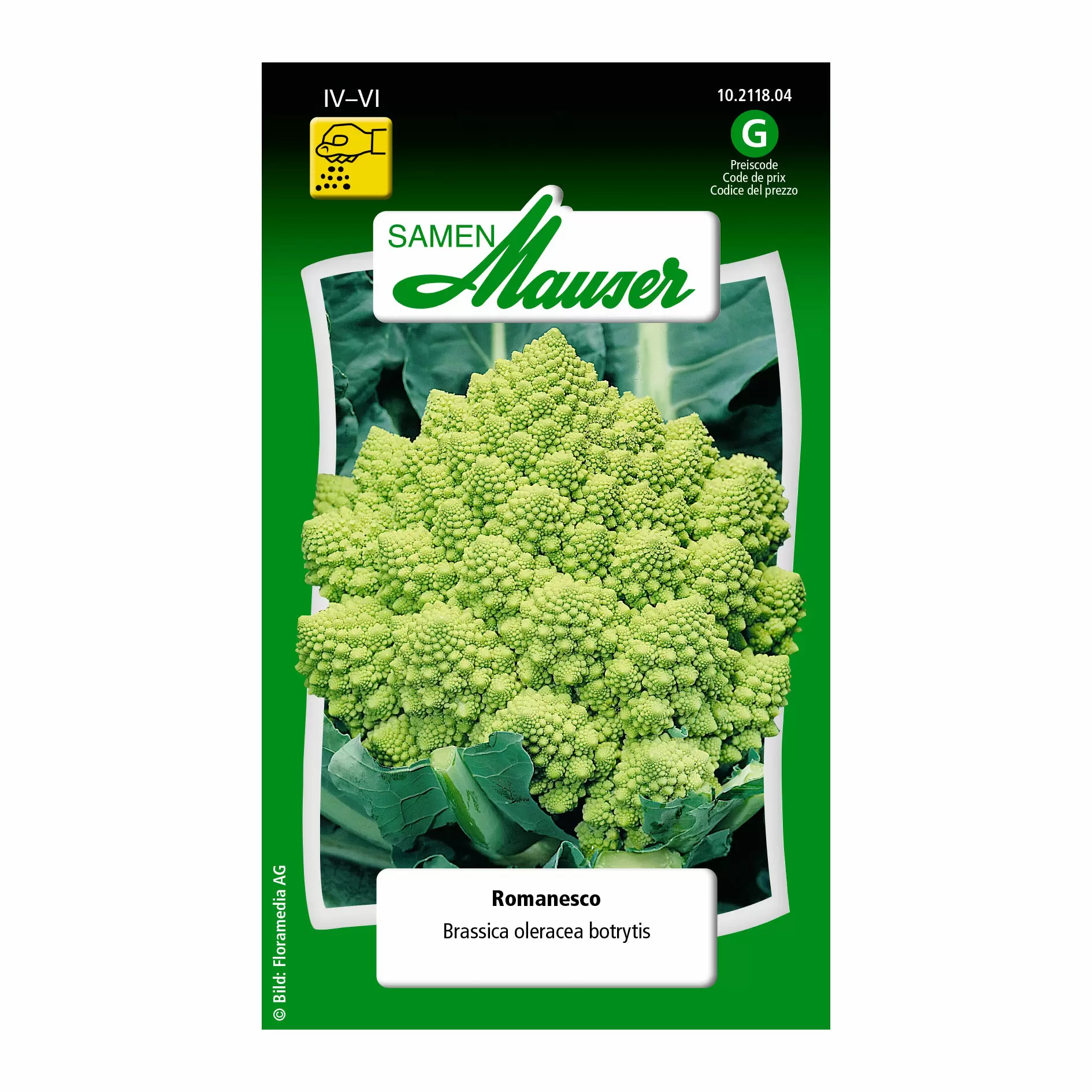 Der Blumenkohl 'Romanesco' (Brassica oleracea botrytis) zeichnet sich durch seinen vorzüglichen Geschmack und seine Eignung zum Tiefkühlen aus. Ausgesät werden kann er zwischen ab März in Saatschalen oder am Mitte April direkt im Freiland. Besonders starke Setzlinge können sehr tief und auf 50 x 50 cm Abstand gepflanzt werden. Vor dem Pflanzen sollte Dünger eingearbeitet werden. Die Keimdauer beträgt 8 - 10 Tage. Geerntet werden können die Kohlköpfe zwischen Juni und September.