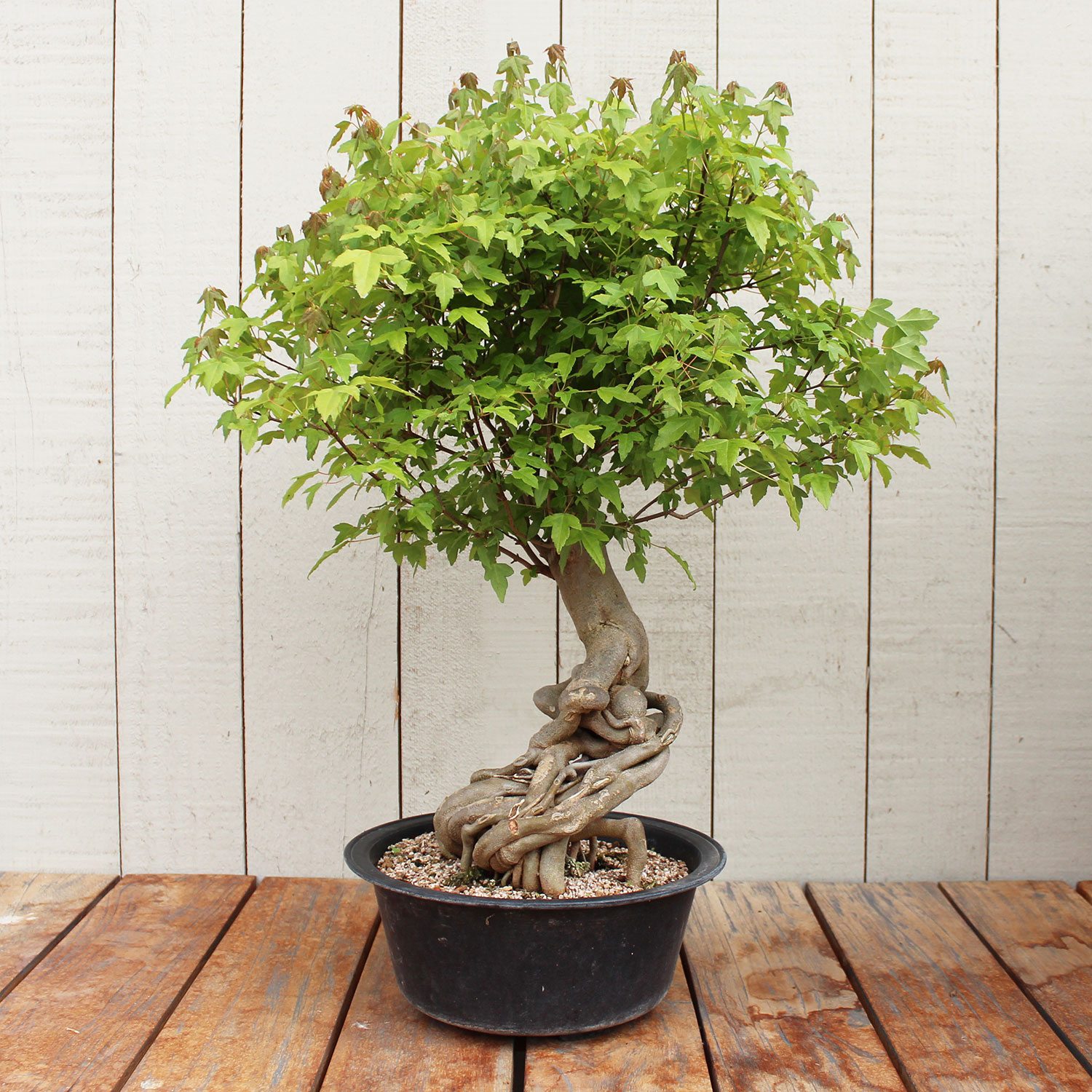 Der asiatische Dreispitzahorn eignet sich nebst seiner schönen Rinde und seiner orange-gelb leuchtenden Herbstfärbung auch wegen seiner Schnittverträglichkeit besonders gut für die Bonsaigestaltung. Die ausgesuchten Rohlinge verfügen bereits über dicke Stämme und wunderschöne Luftwurzeln.