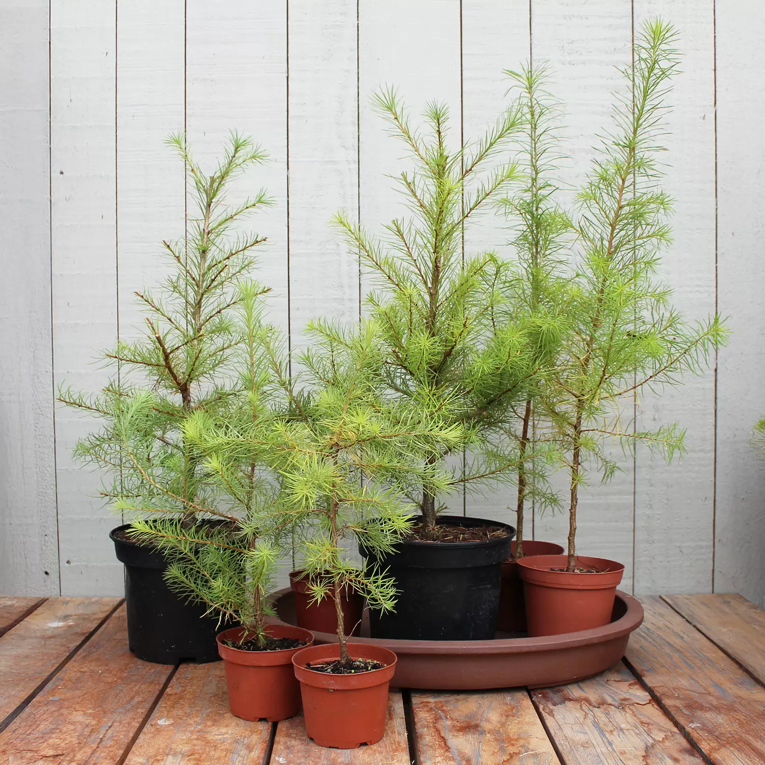 Bei den Lärchen, die in diesem Kurs verwendet werden, handelt es sich um die robuste, japanische Art Larix kaempferi. Aufgrund der feinen Nadeln und der sich schnell verzweigenden Verästelung eignet sich die Lärche besonders gut zur Gruppen-Gestaltung.