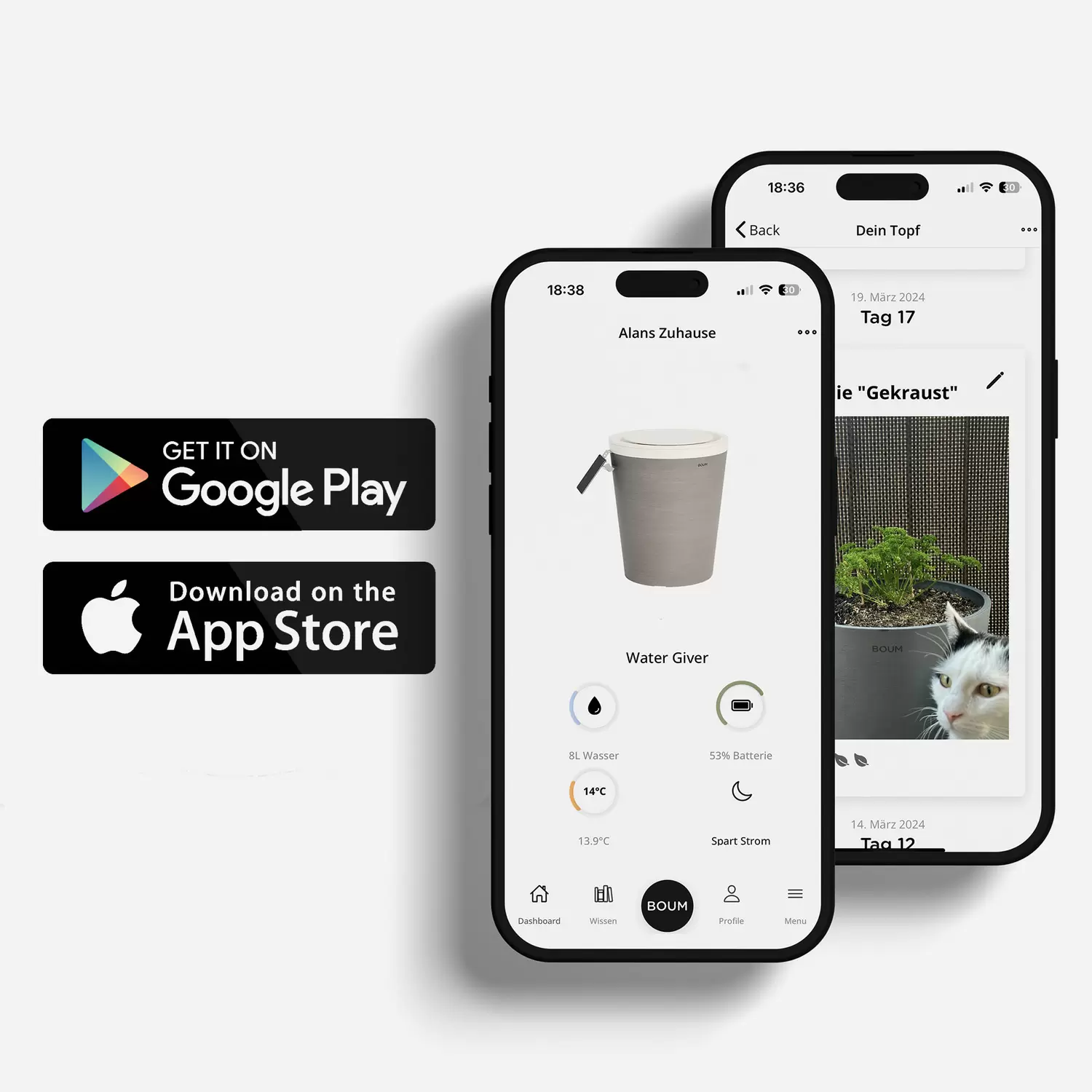 Der neue Boum Topf Pro ist in zwei Grössen erhältlich. Der Boum Topf Pro 15L verfügt über ein Bodenvolumen von 15 Litern und eine Pflanztiefe von 29 cm. Er ist geeignet für Zimmerpflanzen, Kräuter, Gemüse, Blumen, kleine Sträucher und Bäumchen. Der Boum Topf Pro 30L verfügt über ein Bodenvolumen von 30 Litern und eine Pflanztiefe von 37 cm. Er eignet sich hervorragend für grosse, langlebige Pflanzen und Bäume sowie Gemüse wie Tomaten und Gurken, die von viel Bodenvolumen profitieren. Beide Grössen sind in drei zeitlosen Farben verfügbar, die sich in jedes Zuhause einfügen.