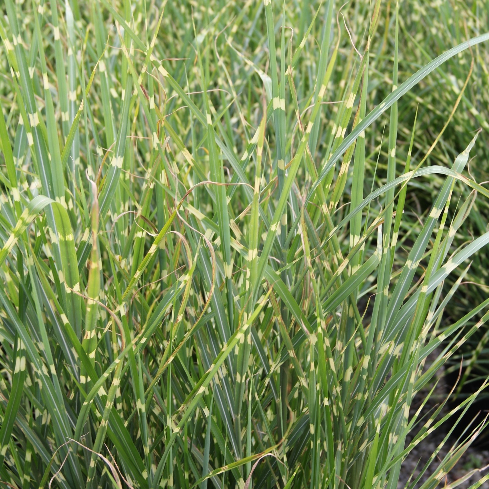 Das Chinaschilf 'Zebrinus' (Miscanthus sinensis) ist durch seine schilfartigen Halme mit gelbweissen Querstreifen gut erkennbar.