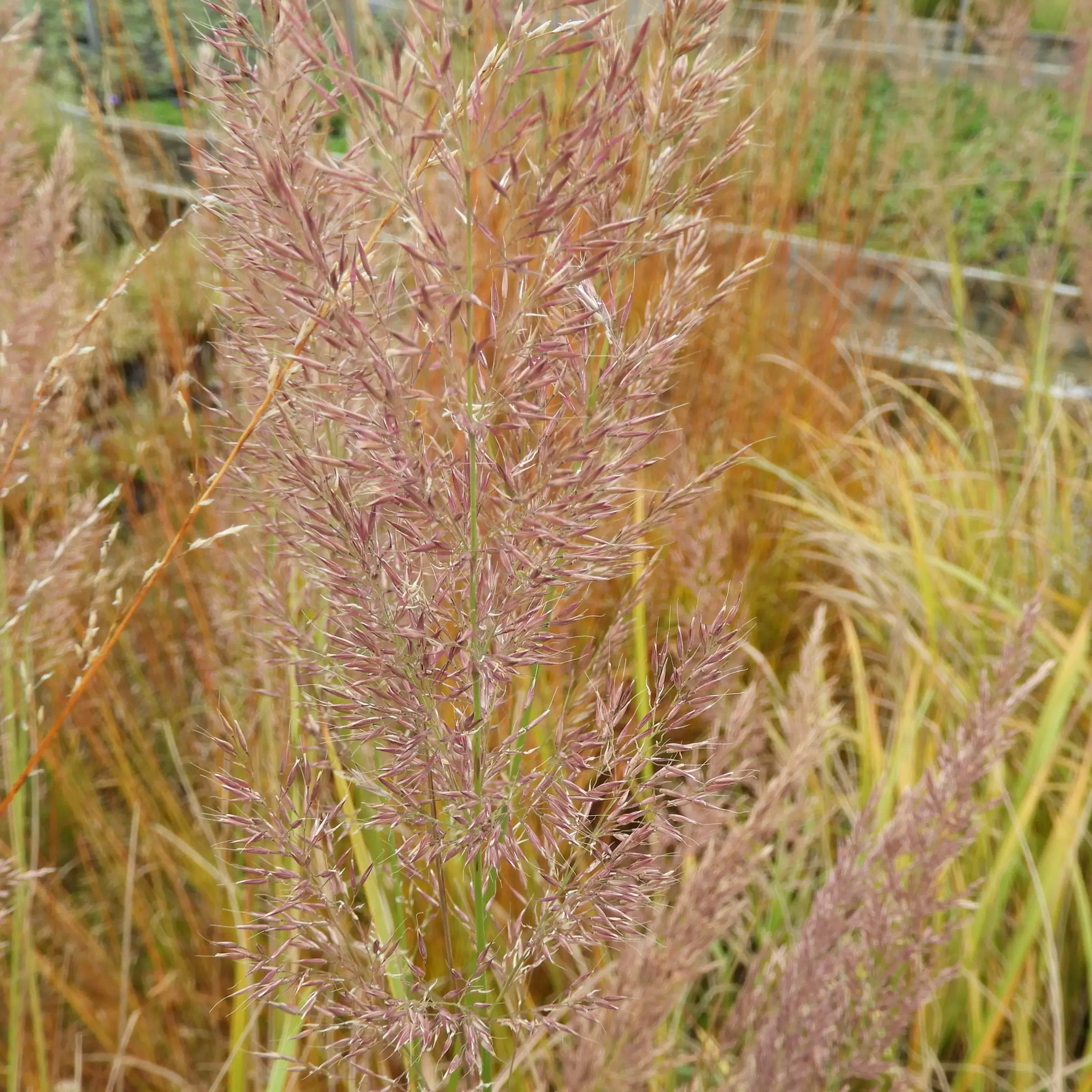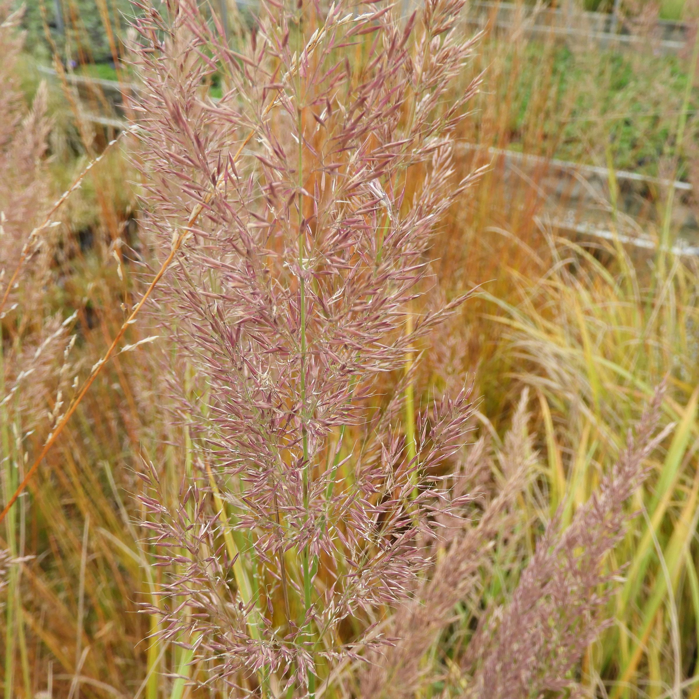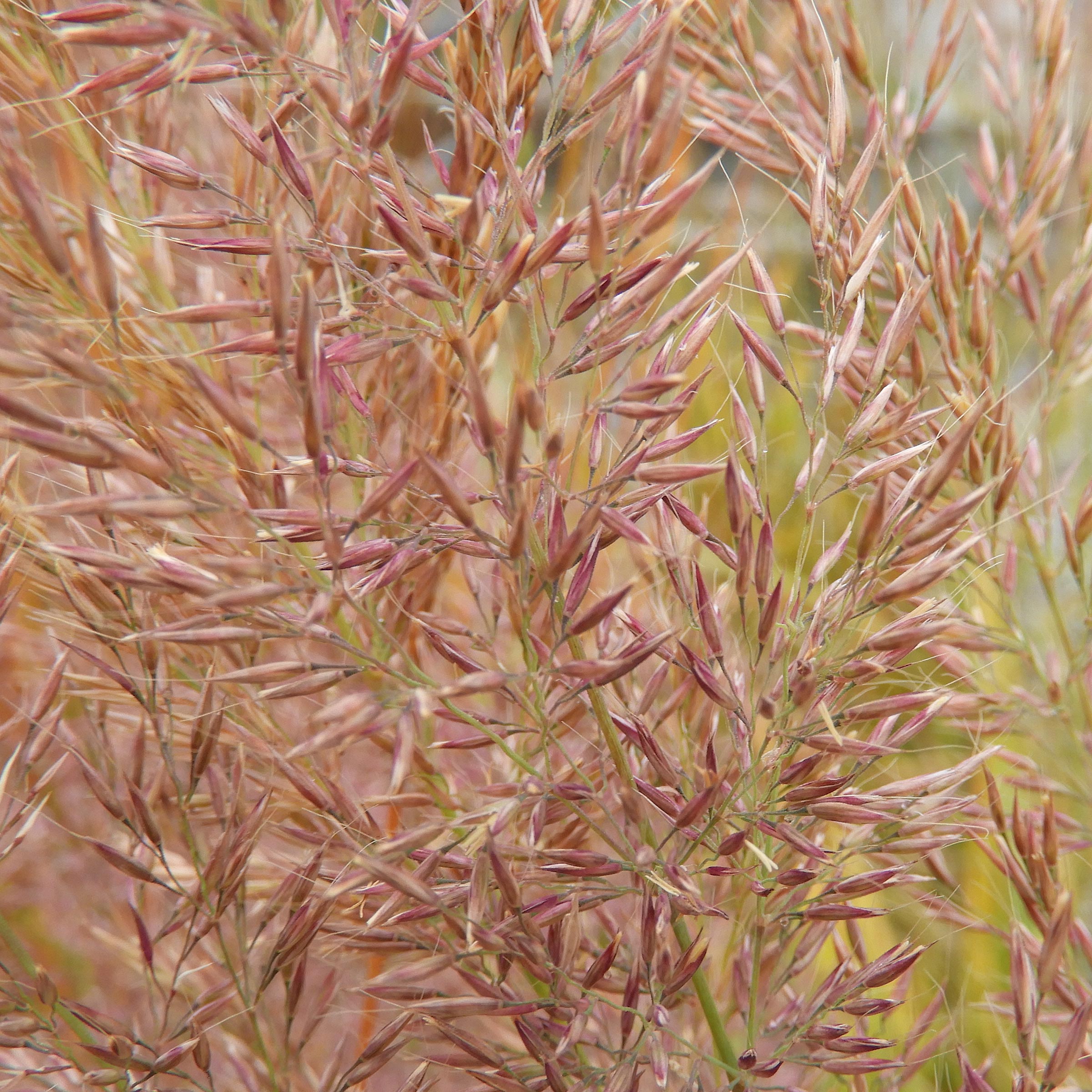 - Im Spätsommer erscheinen lange Halme an deren Ende sich grosse, feinverzweigte, silbrig bis rosafarbene Blütenrispen bilden. Diese erreichen eine Höhe von etwa 100 cm.