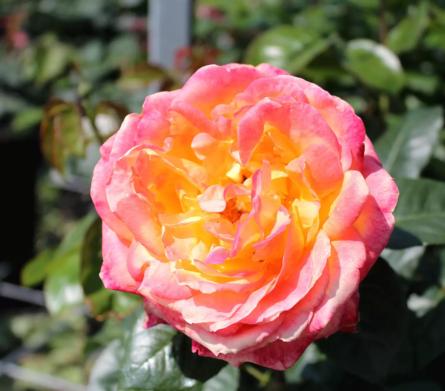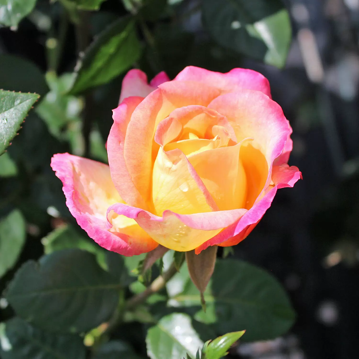 - Die Edelrose 'Pullman Orient Express' gehört zu den vielfarbigen Sorten. Ihre prächtigen Blüten besitzen eine edle Form und sind gut gefüllt. In der Mitte leuchten sie kräftig gelb, während die Ränder der Blütenblätter ein sattes dunkelrosa zeigen.