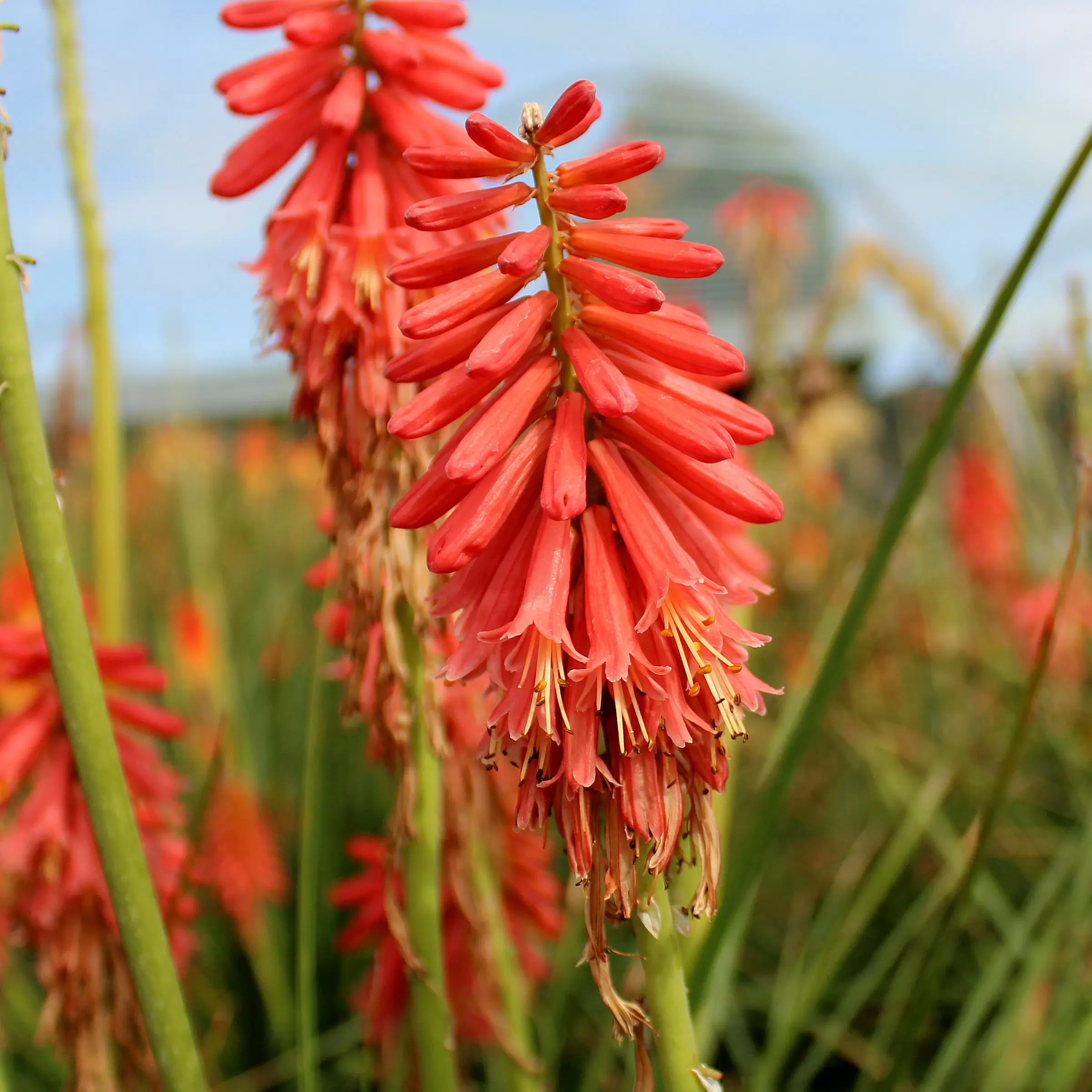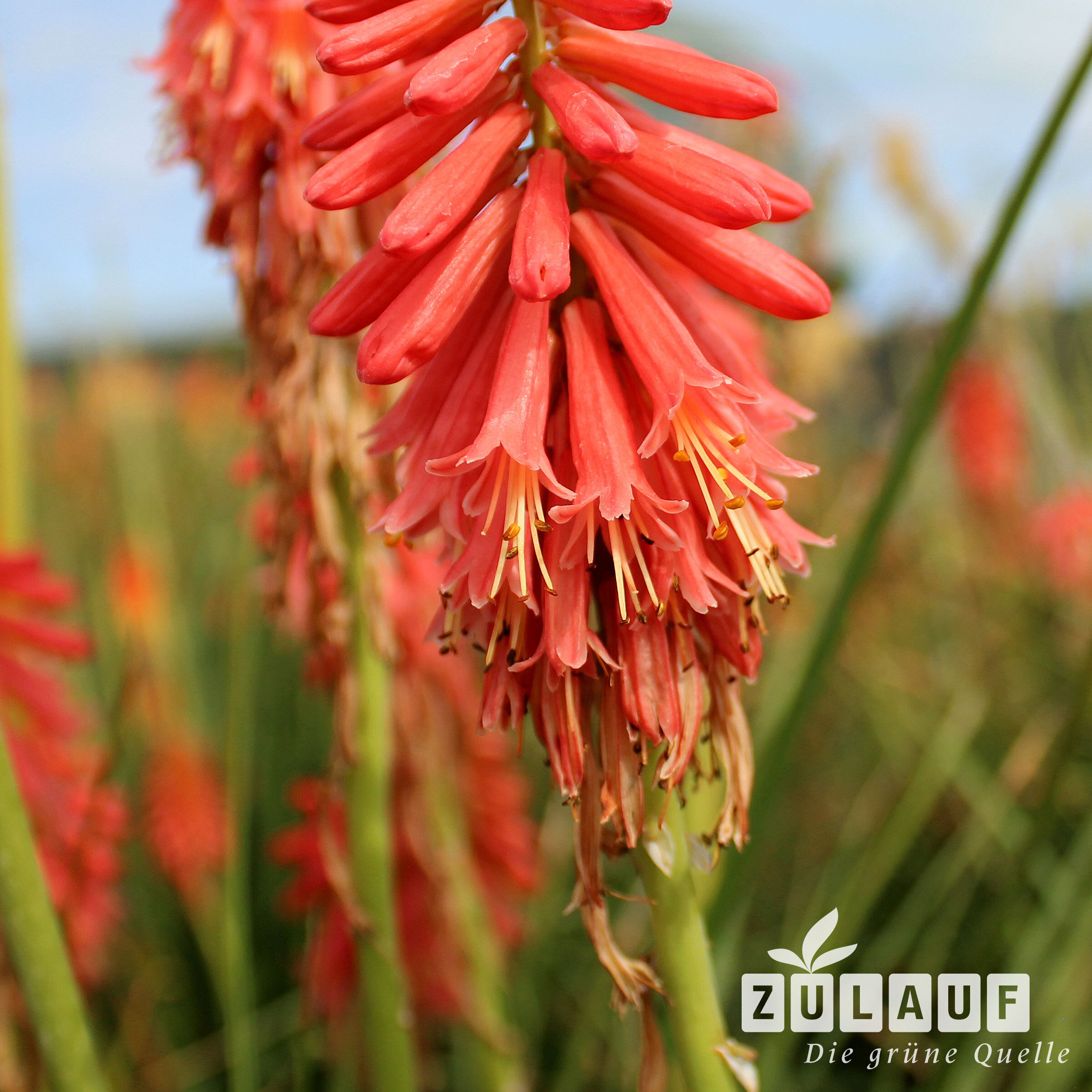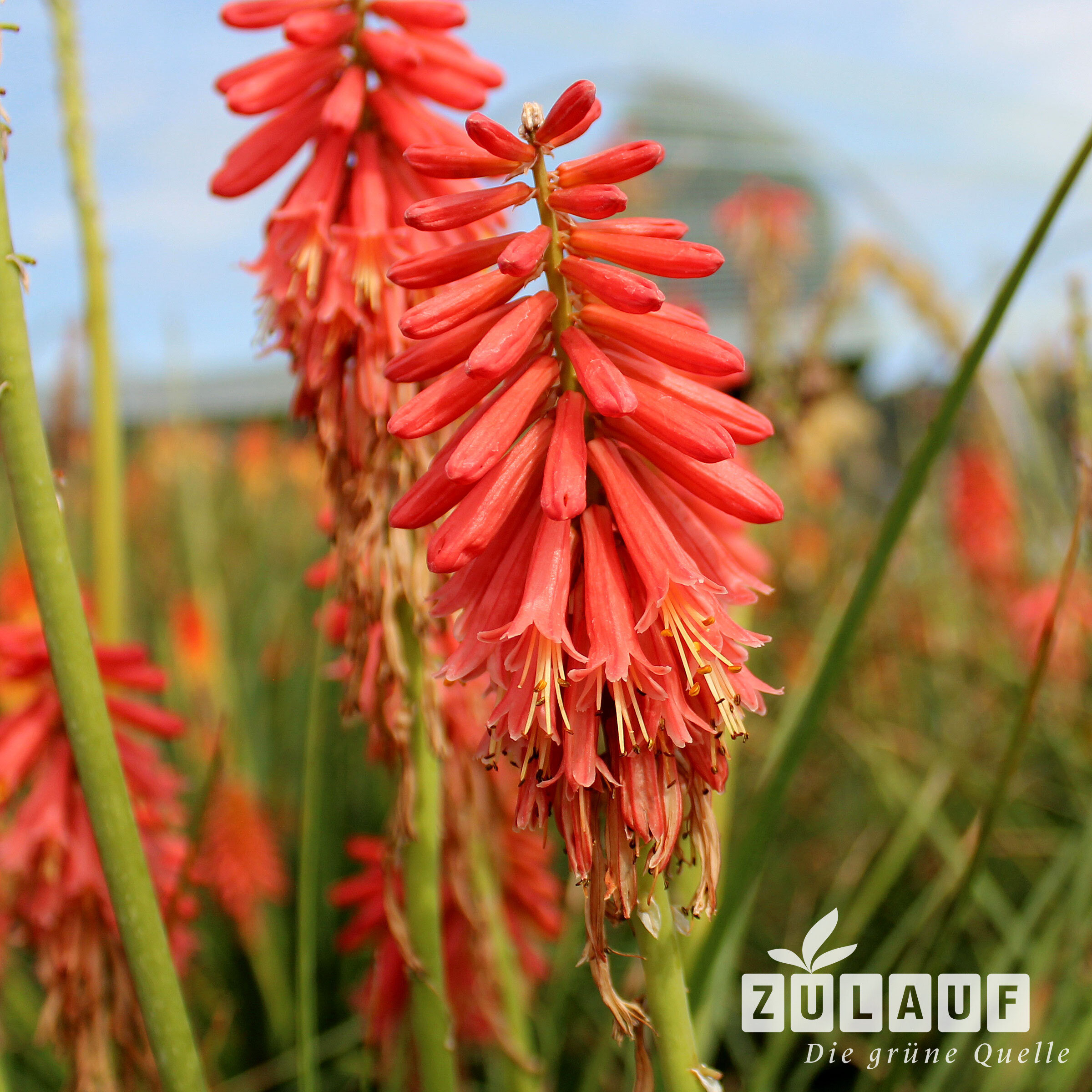 Die Fackellilie 'Red Hot Popsicle'® (Kniphofia 'Red Hot Popsicle'®) reagiert empfindlich auf Staunässe, ist ansonsten jedoch eine pflegeleichte Staude mit interessanten, leuchtend feuerroten Blüten.