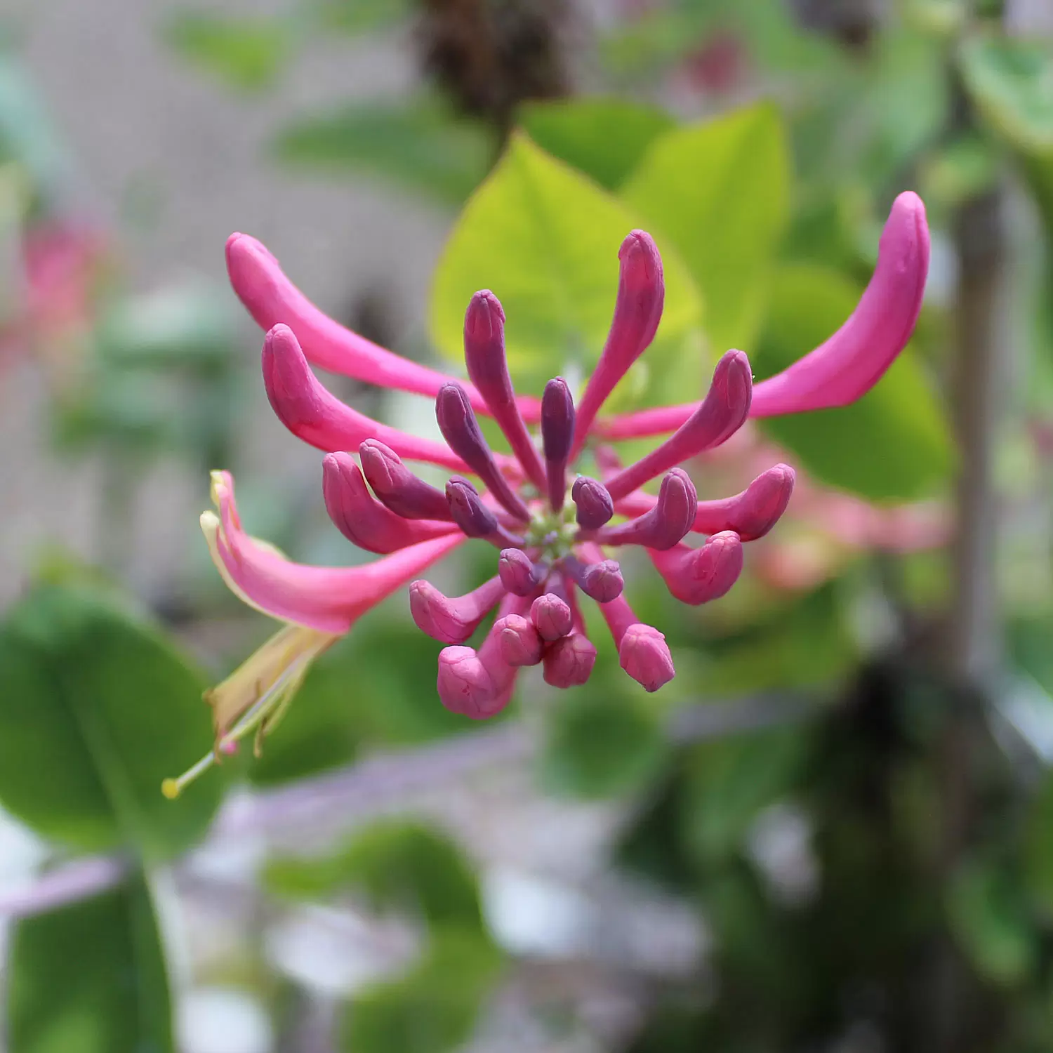 - Von Juni bis September bringt sie dichte Blütenquirle mit röhrenförmigen, karminroten Blüten, die innen gelb sind, hervor. Besonders auffällig ist ihr angenehmer Duft.