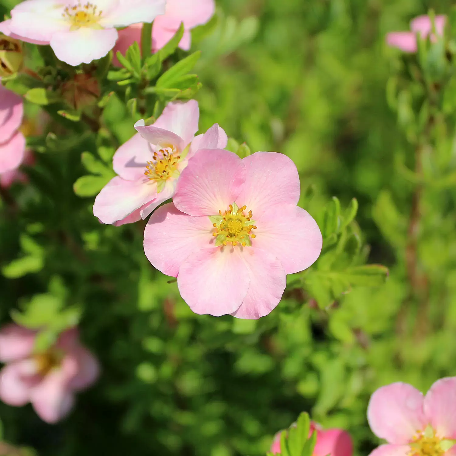 Der Fingerstrauch (Potentilla fruticosa 'Lovely Pink') begeistert von Mai bis Oktober mit seinen einfachen bis halbgefüllten, rosa Blüten. Man kann ihn sehr leicht pflegen und er verträgt auch exponierte Standorte.