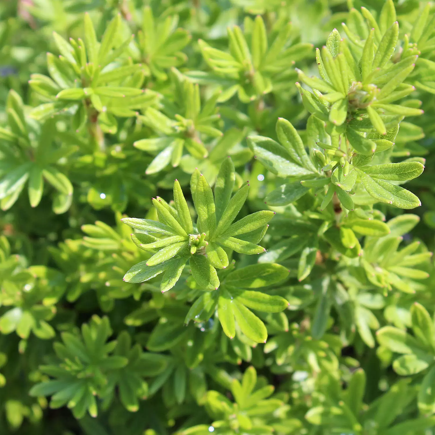 - Die Blätter sind kurz gestielt, gefiedert, handförmig geteilt und dunkelgrün. Die Unterseite ist leicht behaart.