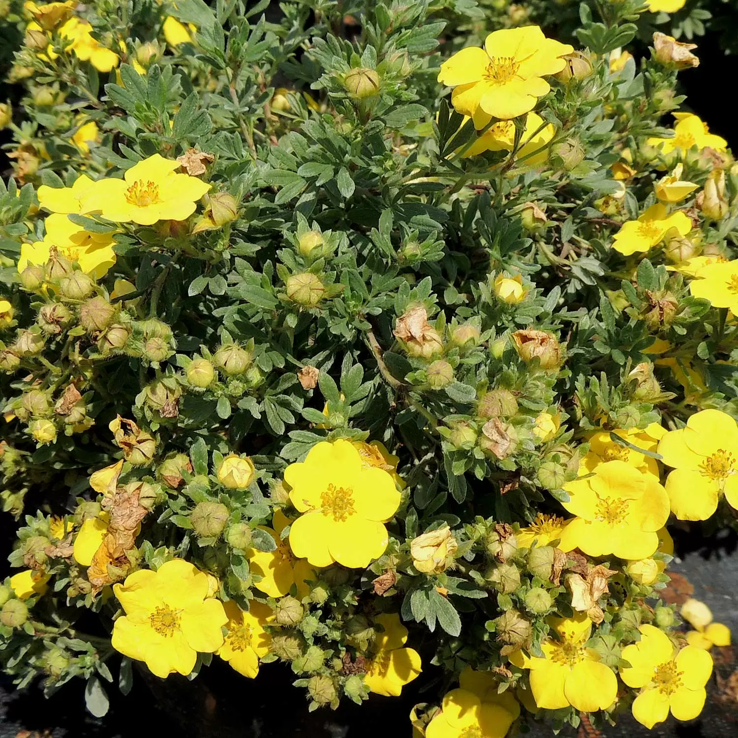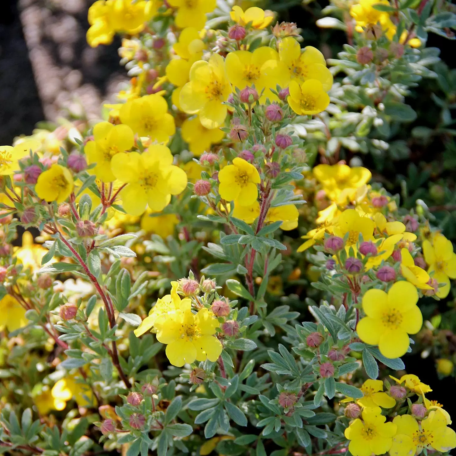 Der Fingerstrauch (Potentilla fruticosa 'Sommerflor') ist ein niedrig wachsender Strauch, der von Mai bis Oktober viele leuchtend gelbe Blüten trägt. Er zeichnet sich durch eine sehr geringe Pflegeanforderung aus und ist auch für exponierte Standorte geeignet.