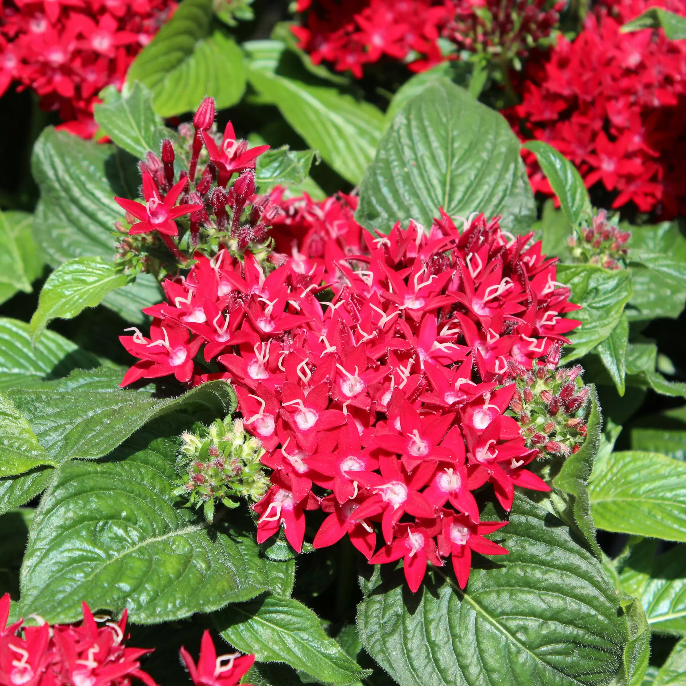 Der Name Fünfzahlstrauch bezieht sich auf die fünf Blütenblätter, die vielen kleinen Einzelblüten wirken optisch als grosser Blütenballen. Die Pentas können vor dem Frost als Zimmerpflanze bis zum Frühjahr überdauert werden.