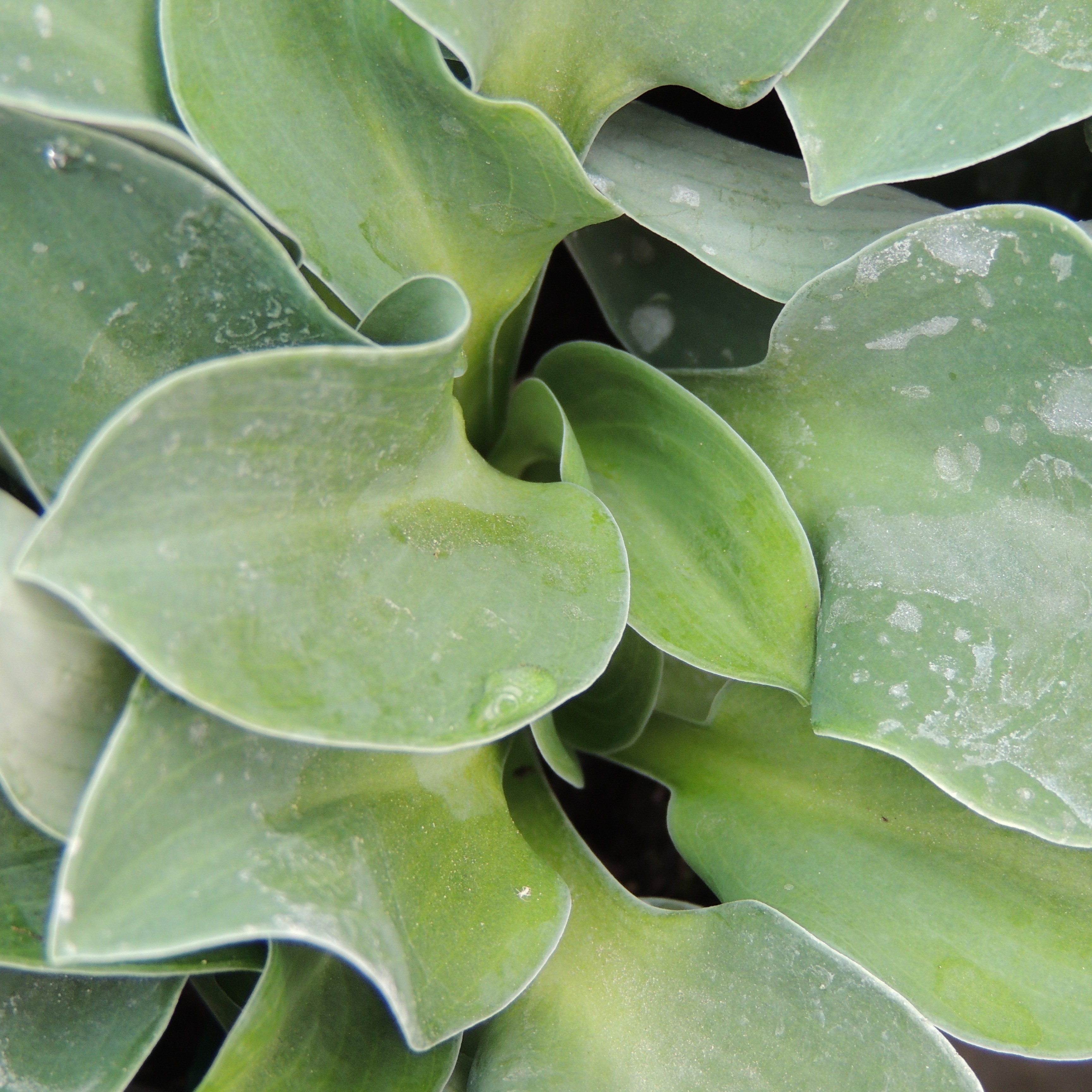 - Die Blätter sind bläulich matt, rund und relativ dick.