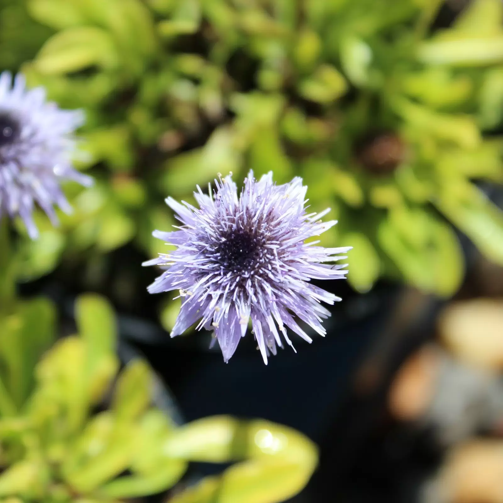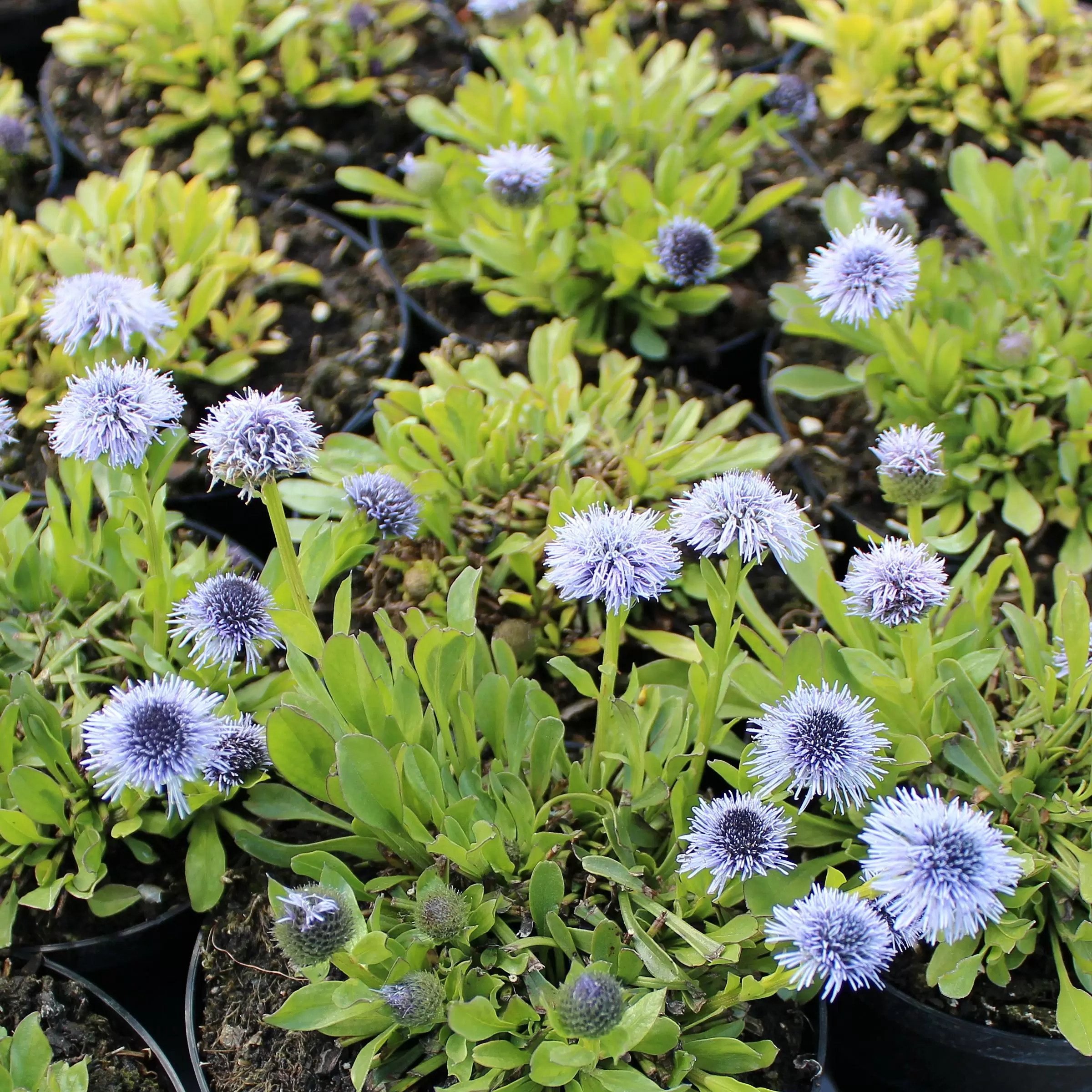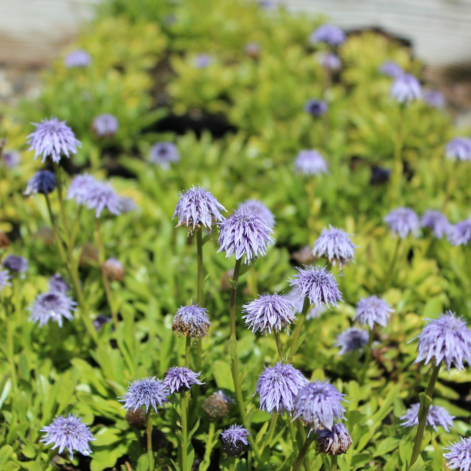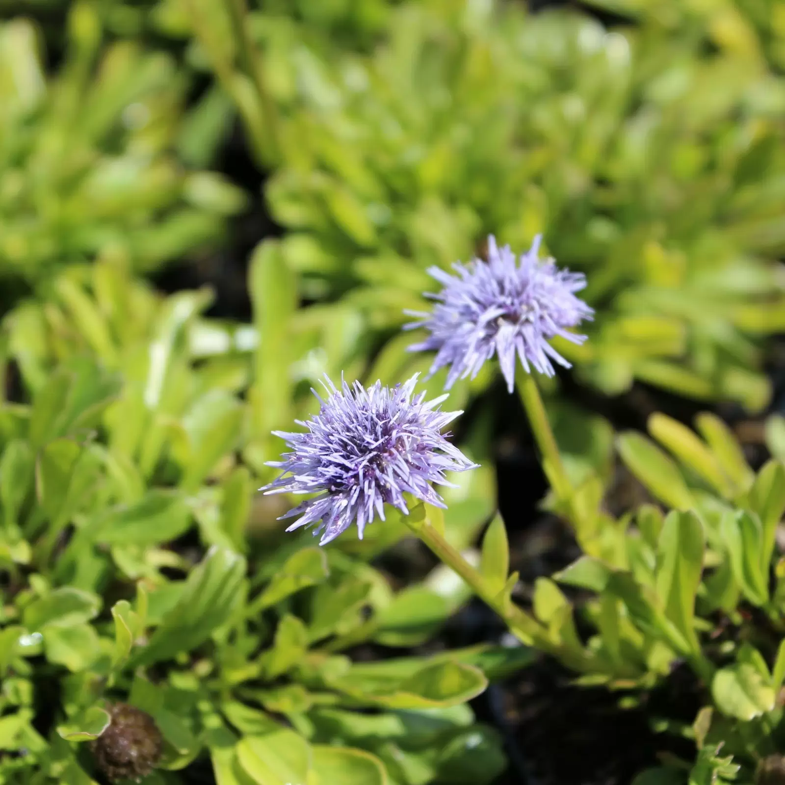 Die einheimische Gemeine Kugelblume (Globularia punctata) kann bis 40 cm hoch werden und wirkt in Kombination mit Hauswurzen oder anderen, niederen Stauden besonders schön.