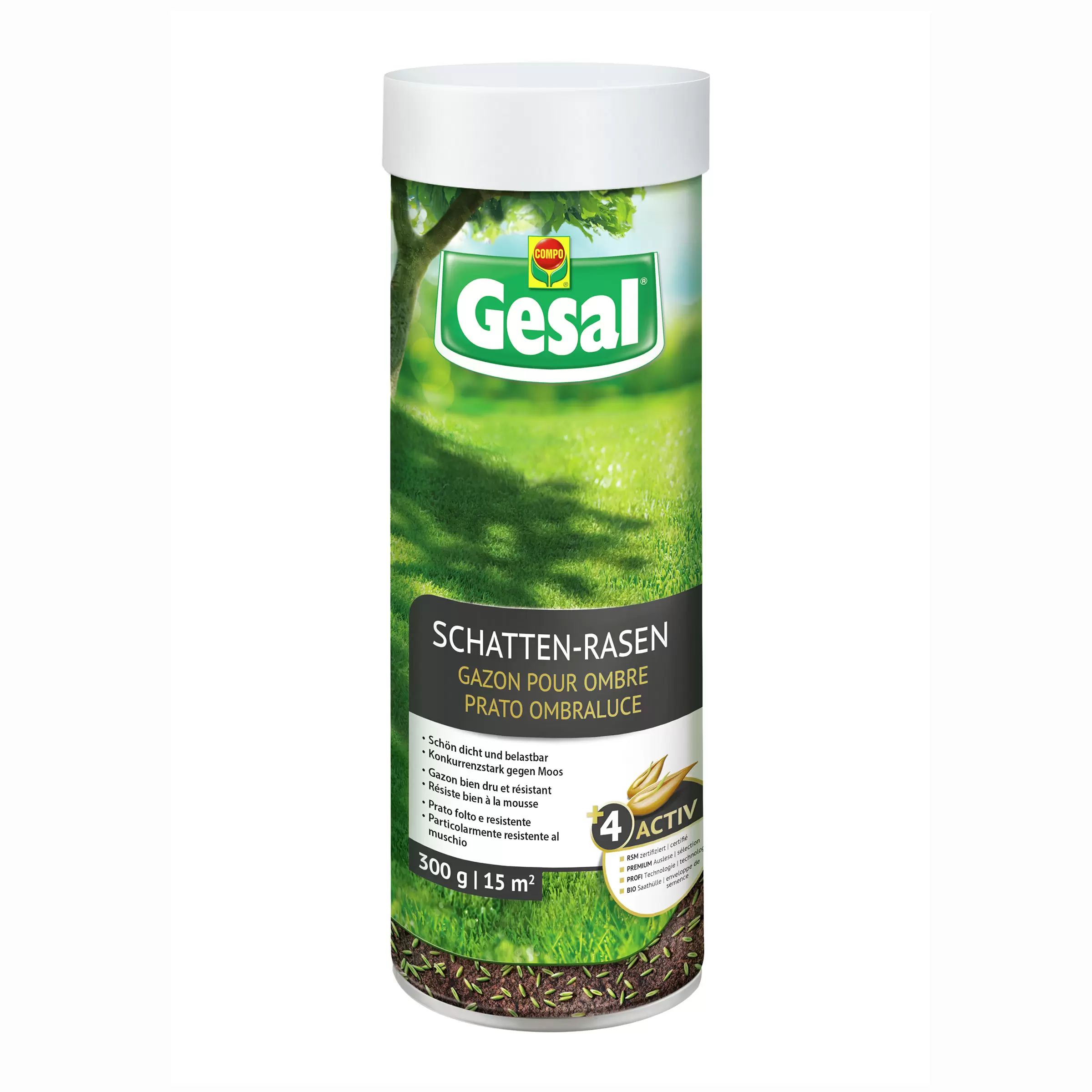 Gesal 'Schatten-Rasen' ist ein spezielles Rasensaatgut, welches optimal an problematischen und schattigen Standorten keimt. Dank der einzigartigen Bio-Saathülle wird eine Keimung gewährleistet. Die Keimlinge haben eine spezielle Grünfärbung zum Schutz vor Vogelfrass.