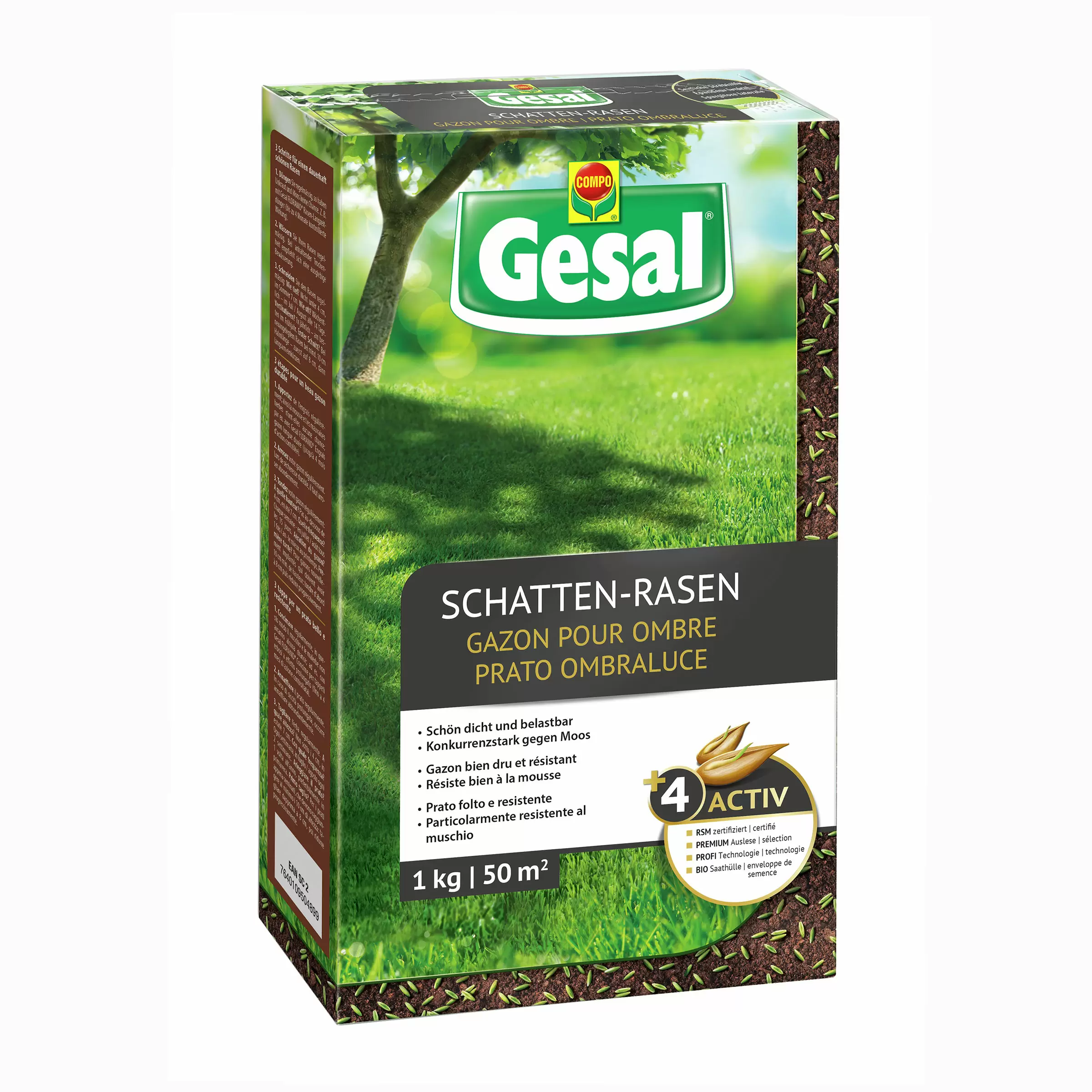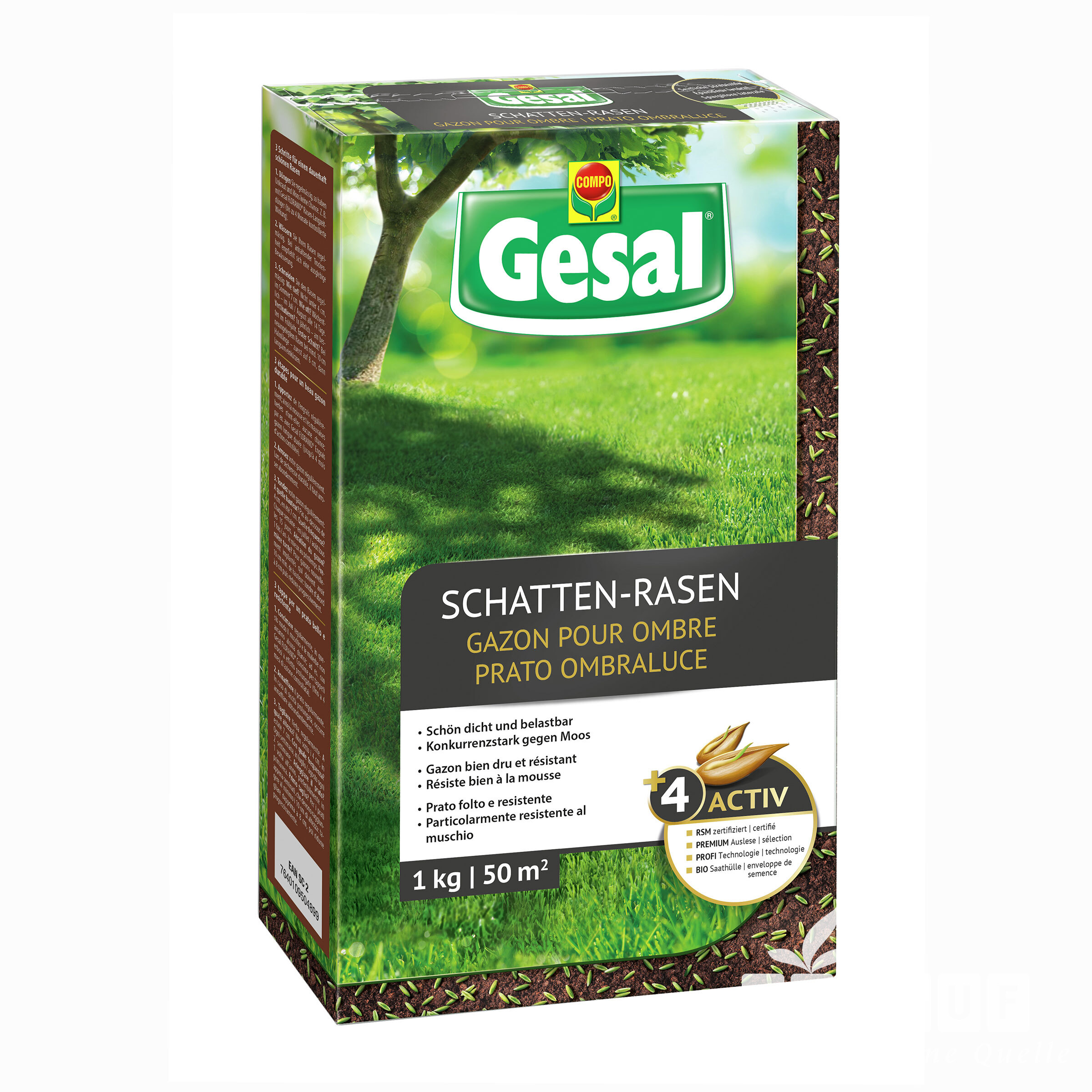 Gesal 'Schatten-Rasen' ist ein spezielles Rasensaatgut, welches optimal an problematischen und schattigen Standorten keimt. Dank der einzigartigen Bio-Saathülle wird eine Keimung gewährleistet. Die Keimlinge haben eine spezielle Grünfärbung zum Schutz vor Vogelfrass.