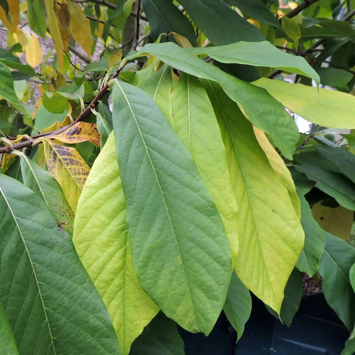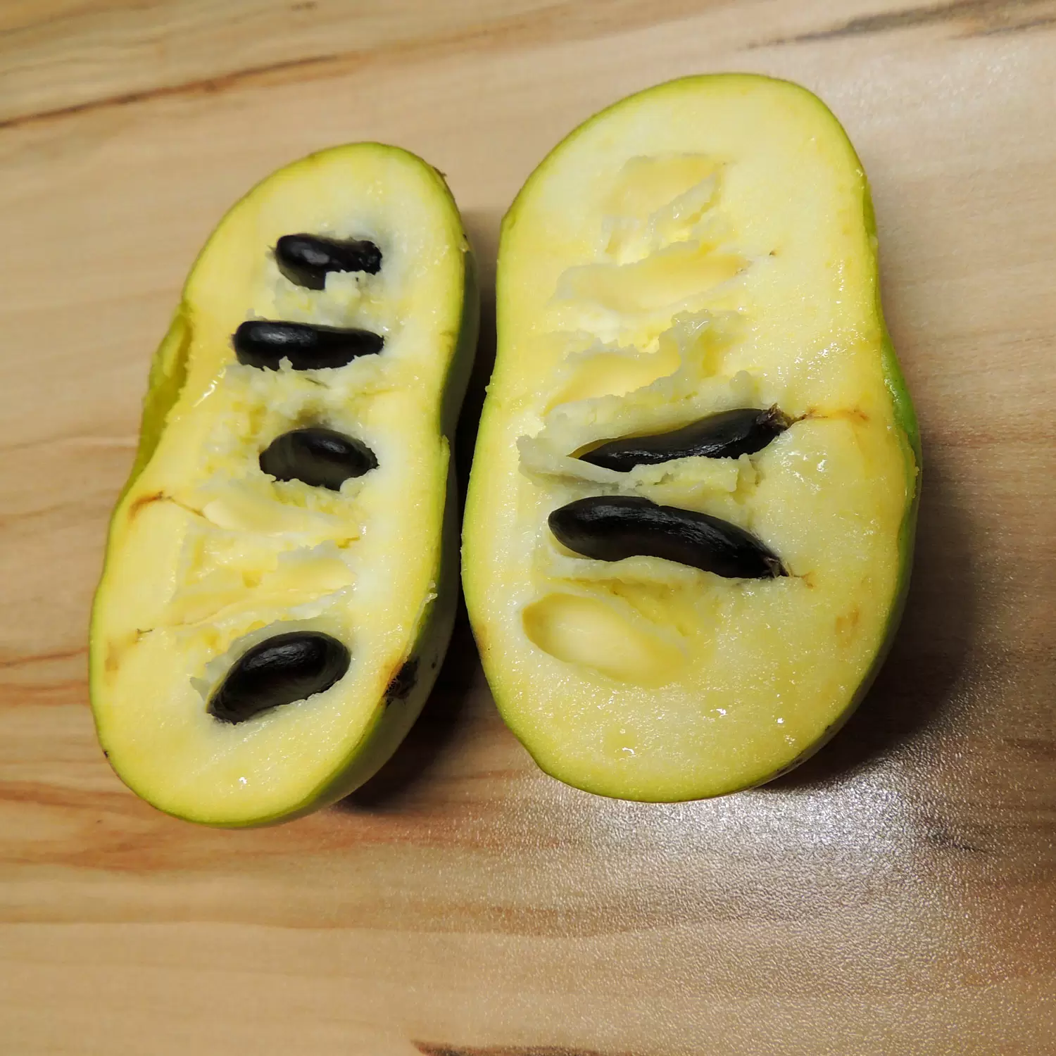 Die Indianerbanane (Asimina triloba 'Davis') wird auch Pawpaw genannt. Sie zeichnet sich durch ihre grünen, etwas unregelmässig geformten Früchte aus, die intensiv im Geschmack sind. Sie haben eine grüne Schale und ein cremiges, hellgelbes Fruchtfleisch, das an eine Mischung aus Banane, Mango und Vanille erinnert.