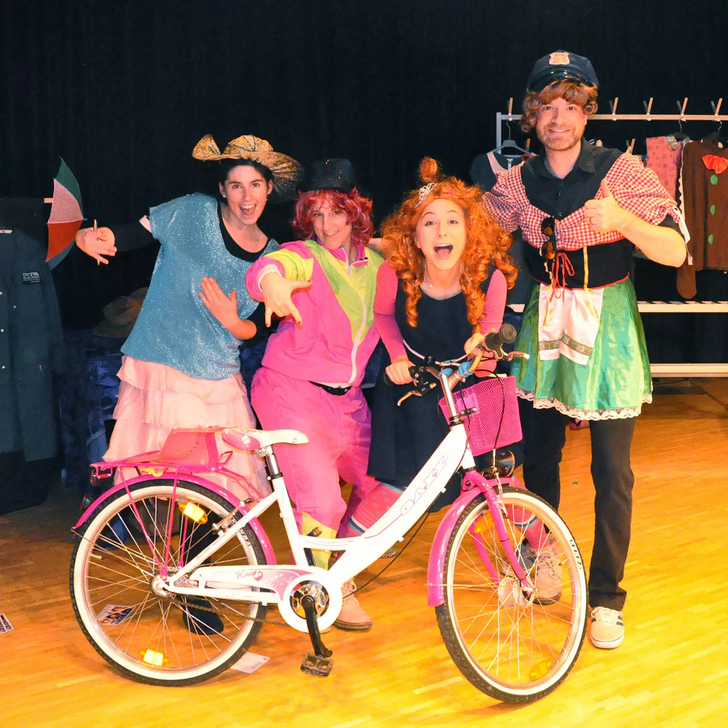 Willkommen zu einem weiteren Abenteuer von Prinzessin Sturmfrisur! Jede Geschichte dieses interaktiven und improvisierten Puppentheaters ist garantiert einzigartig und einmalig und entsteht spontan im Zusammenspiel mit den Kindern. Sie bestimmen, welche Figuren in der Geschichte mitspielen und welche Eigenschaften sie haben.