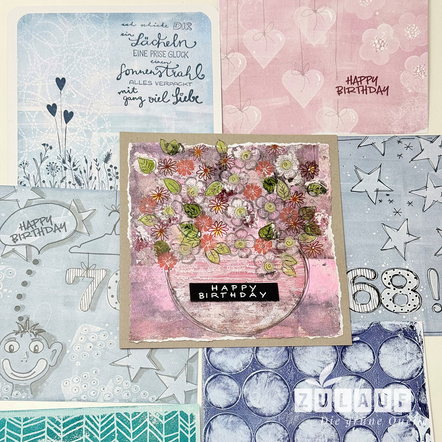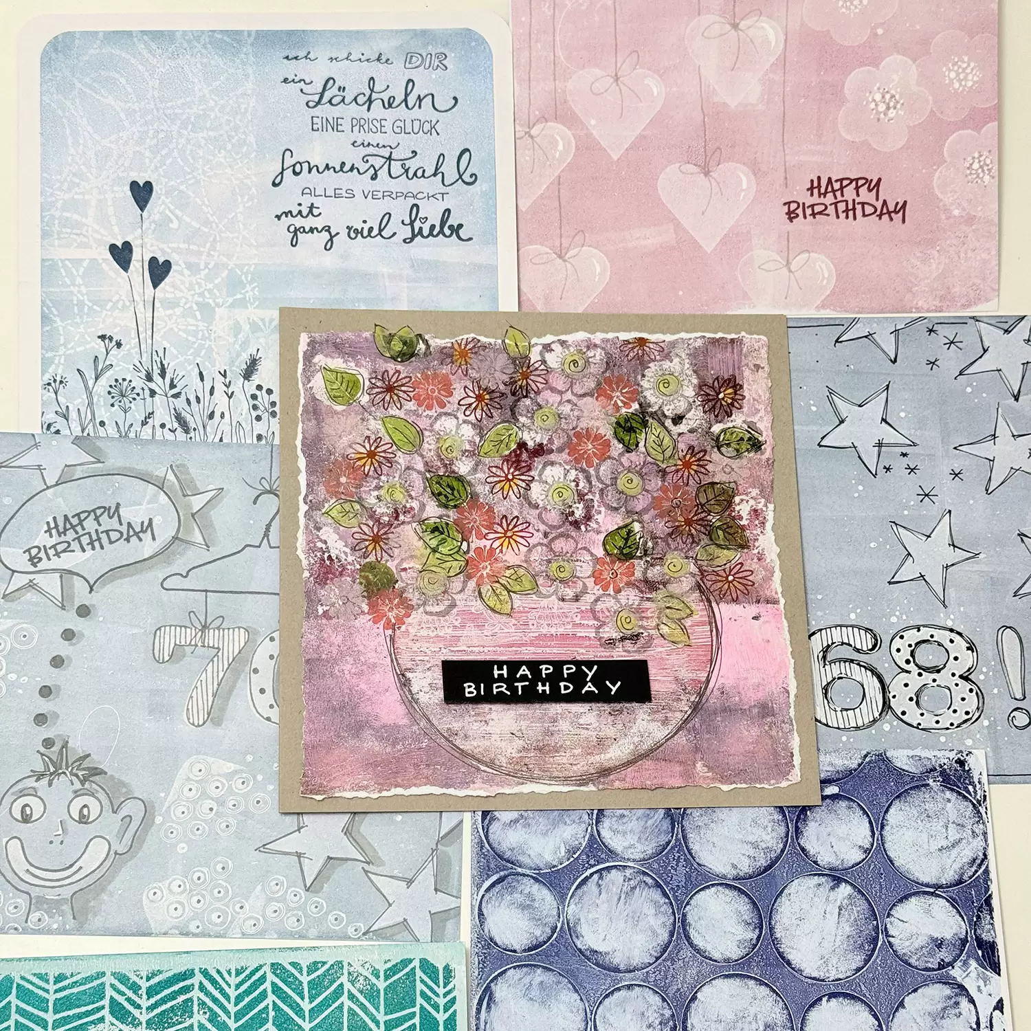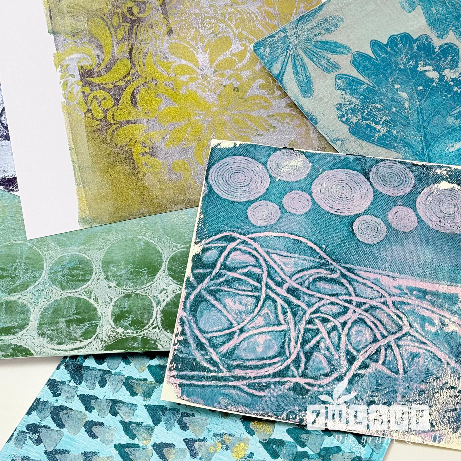Mit Hilfe einer gelartigen Druckplatte werden an diesem Kurs individuelle Prints erstellt, die es garantiert nur einmal auf der Welt gibt. Spielerisch und intuitiv können alle Teilnehmenden mit Farben, Schablonen, Formen, Stempeln, Blättern etc. Formen und Strukturen auf die Druckfläche übertragen und einmalige Druckergebnisse mit nach Hause nehmen. Diese werden als Bild oder als Basis für Karten und Collagen weiterverwendet.