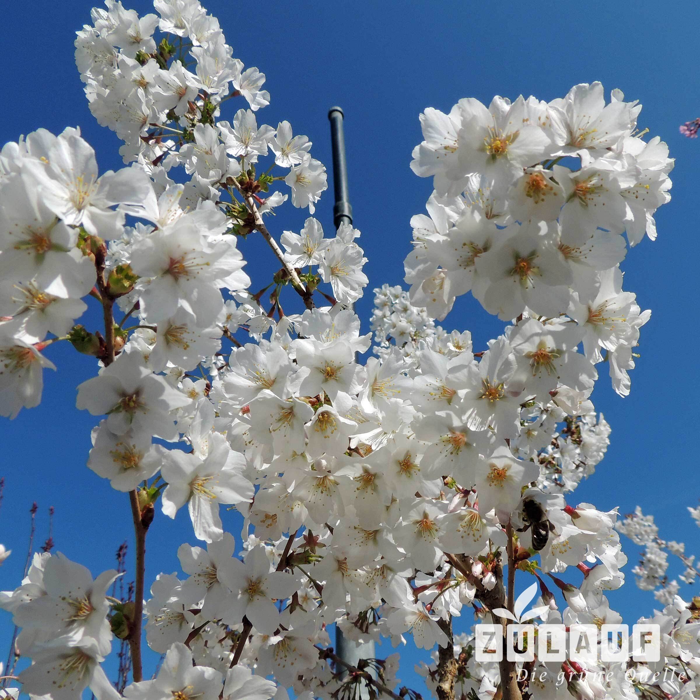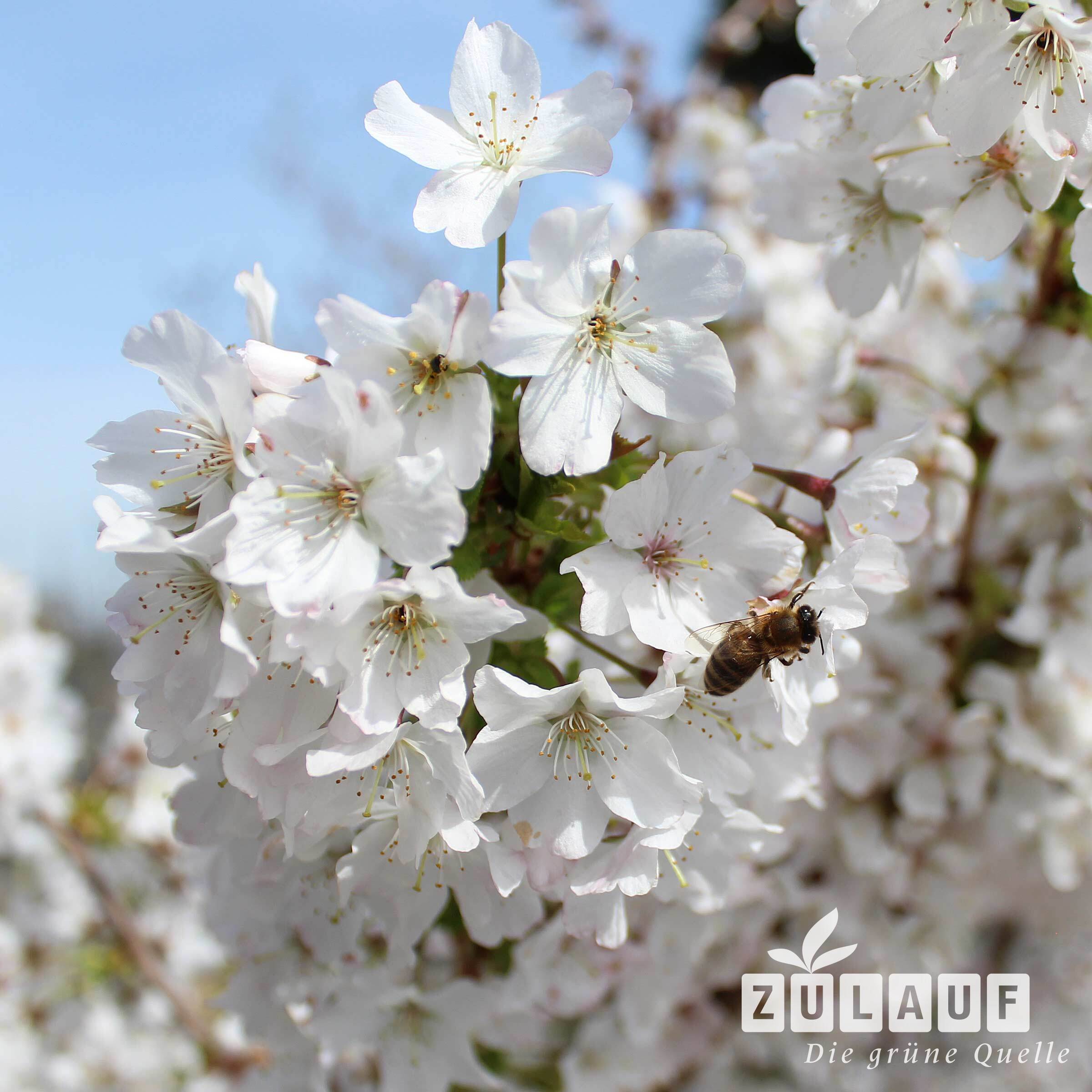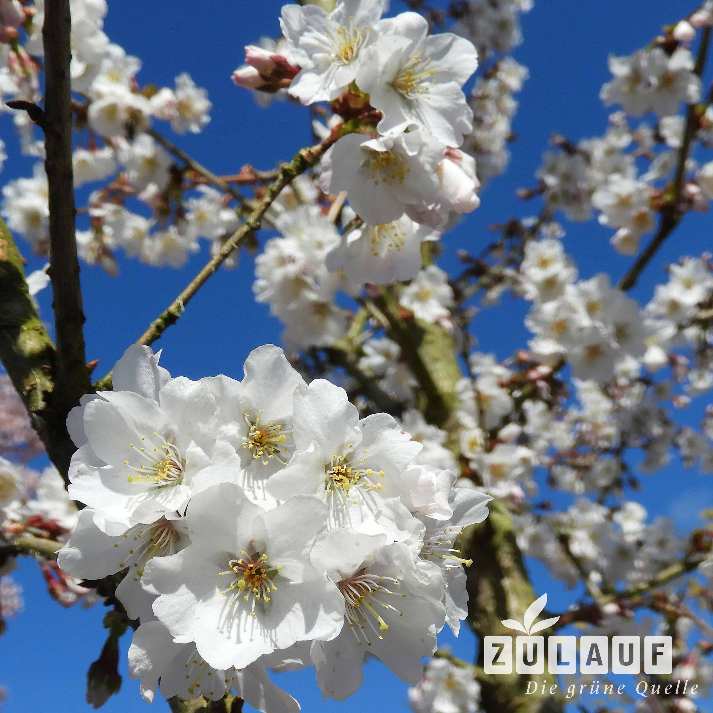 - Weisse bis schwachrosa, einfache Blüten vor dem Blattaustrieb, die ausserordentlich zahlreich erscheinen