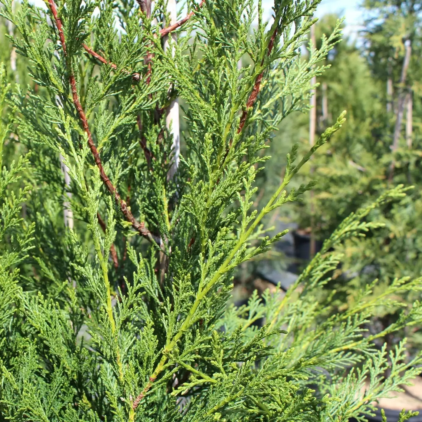 - Hell- bis dunkelgrüne, schuppenförmige, streng harzige, duftende Nadeln.