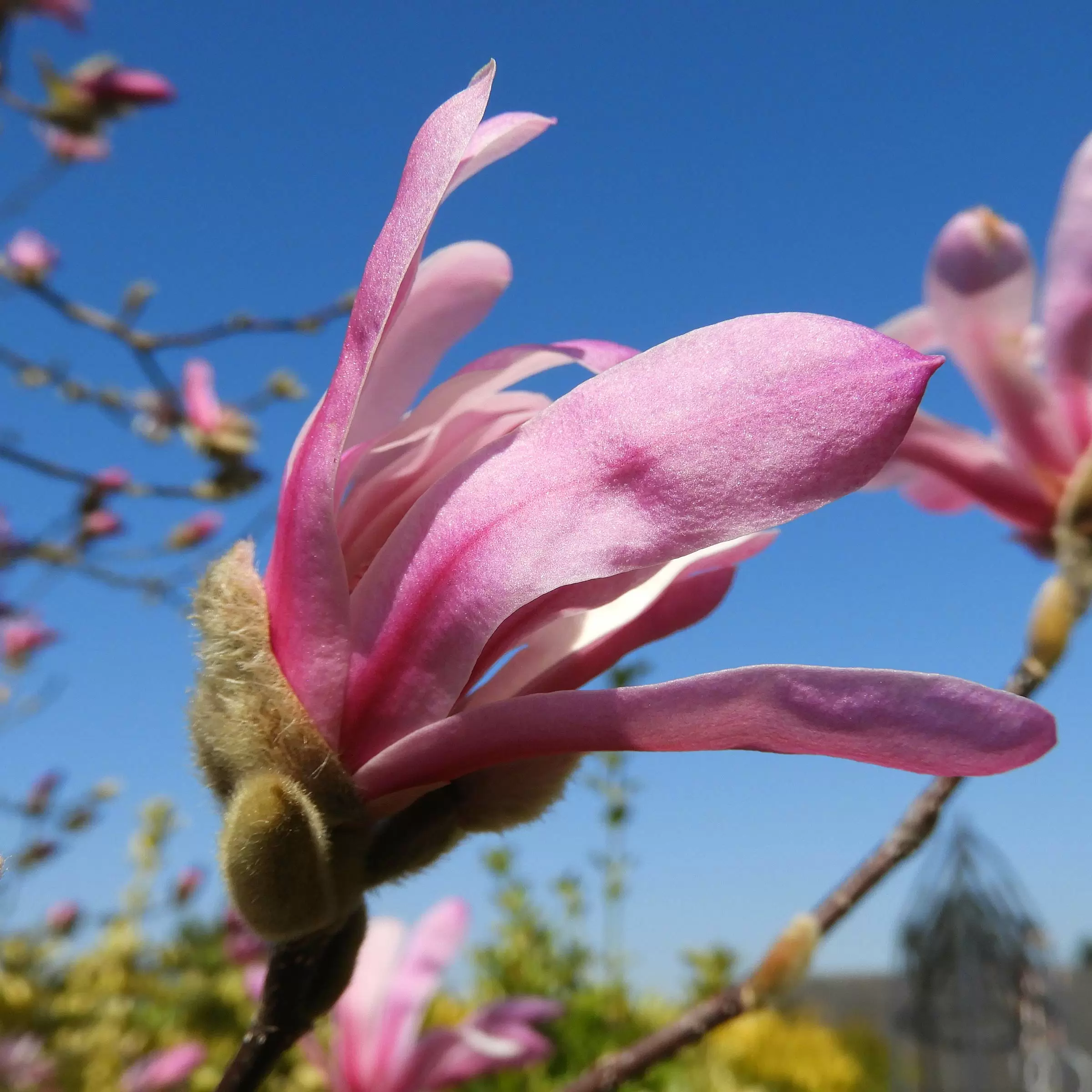 Die Magnolie 'Leonard Messel' (Magnolia x loebneri 'Leonard Messel') ist ein Grossstrauch und mit ihren auffälligen, sternförmigen Blüten ein überaus attraktives Ziergehölz.