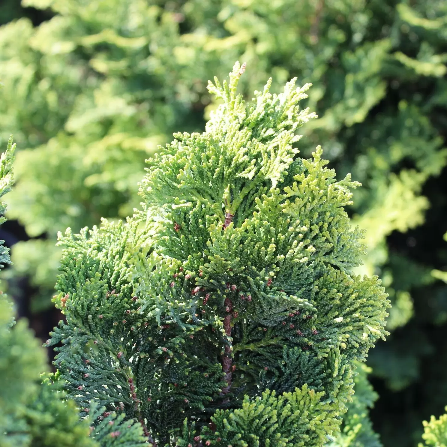 - Grüne, glänzende, fest anliegende, schuppenförmige Nadeln.