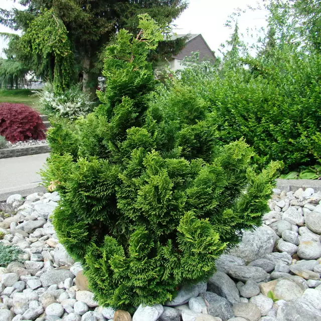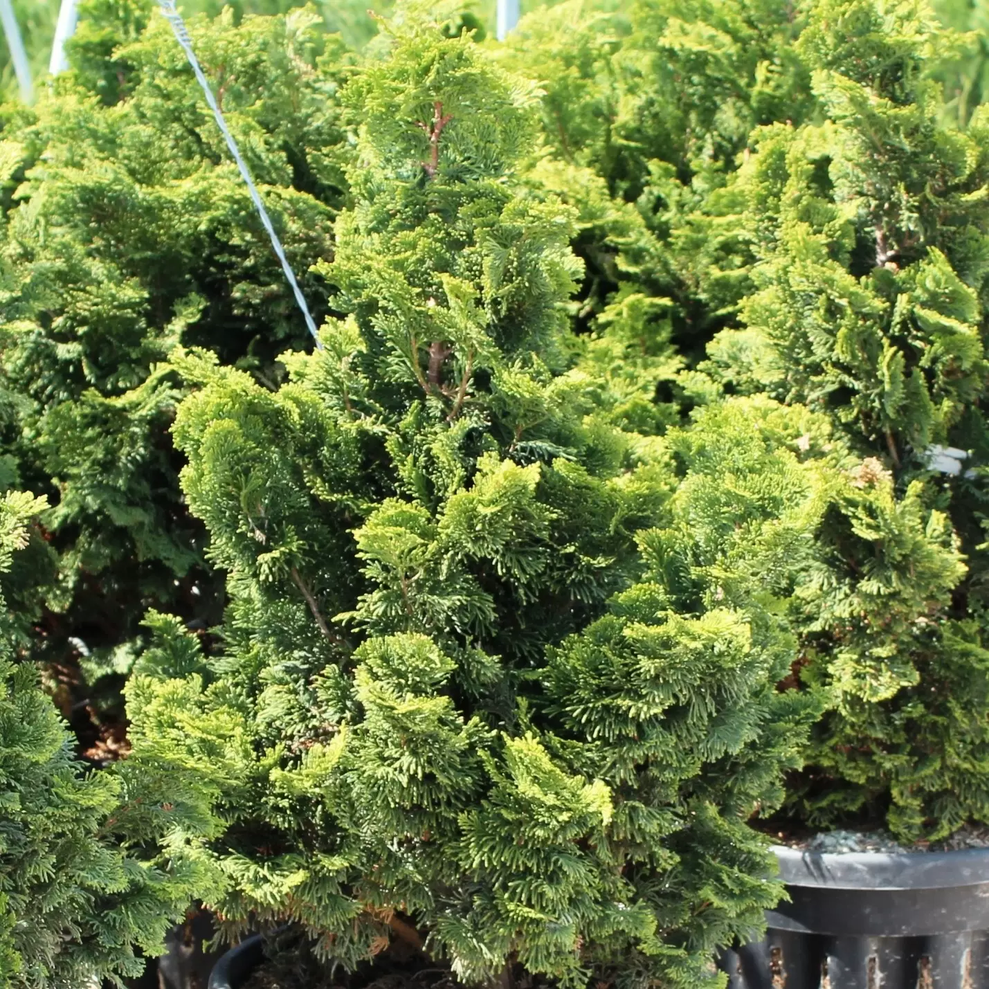 Die Kleine Muschel-Scheinzypresse 'Nana Gracilis' ist eine Sorte welche muschelförmig gedrehte Zweige besitzt und sehr langsam wächst. Sie gedeiht gut an sonnigen Plätzchen im Garten oder auf dem Balkon.