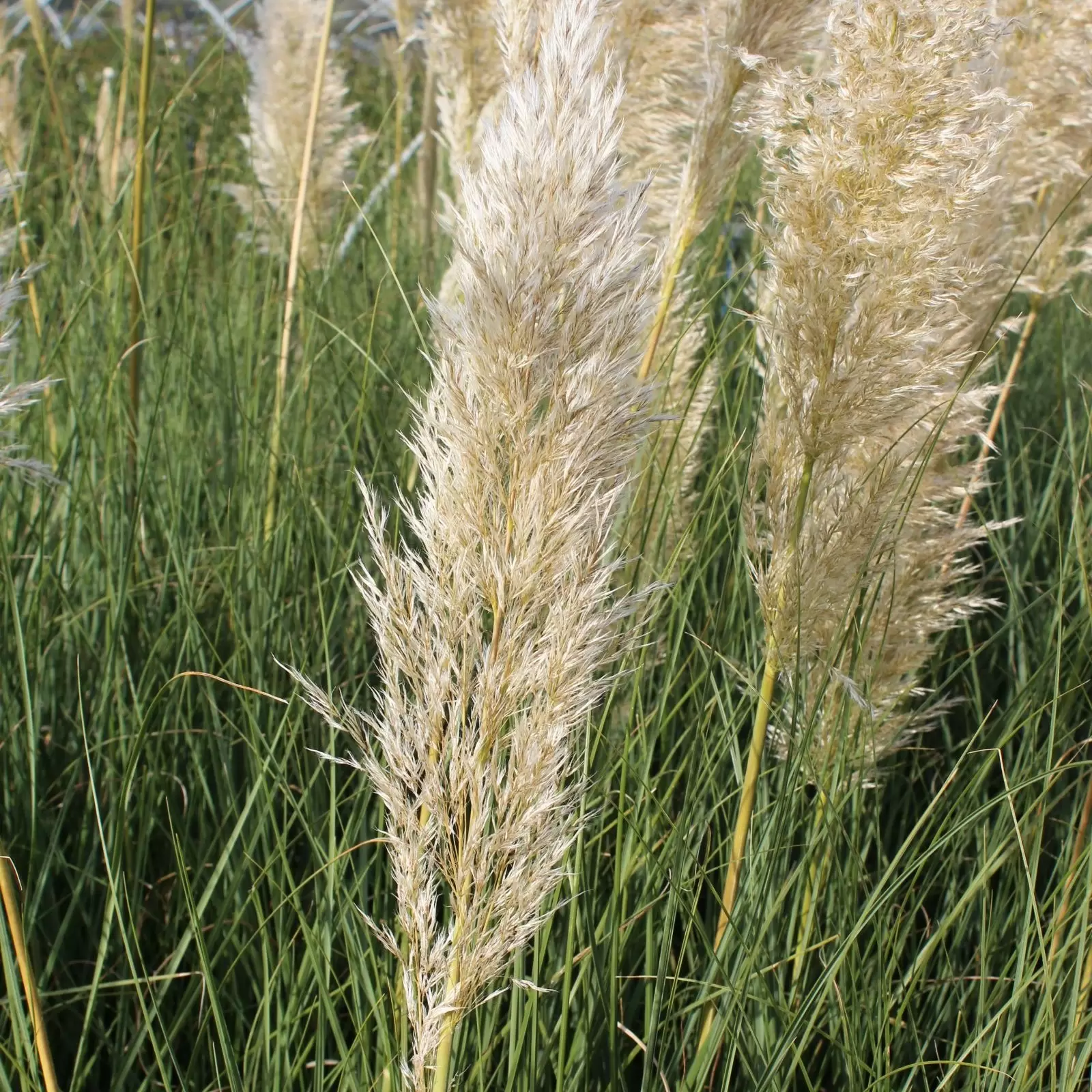 - Silberweisse, grosse, federartige Rispen auf straffen Halmen.