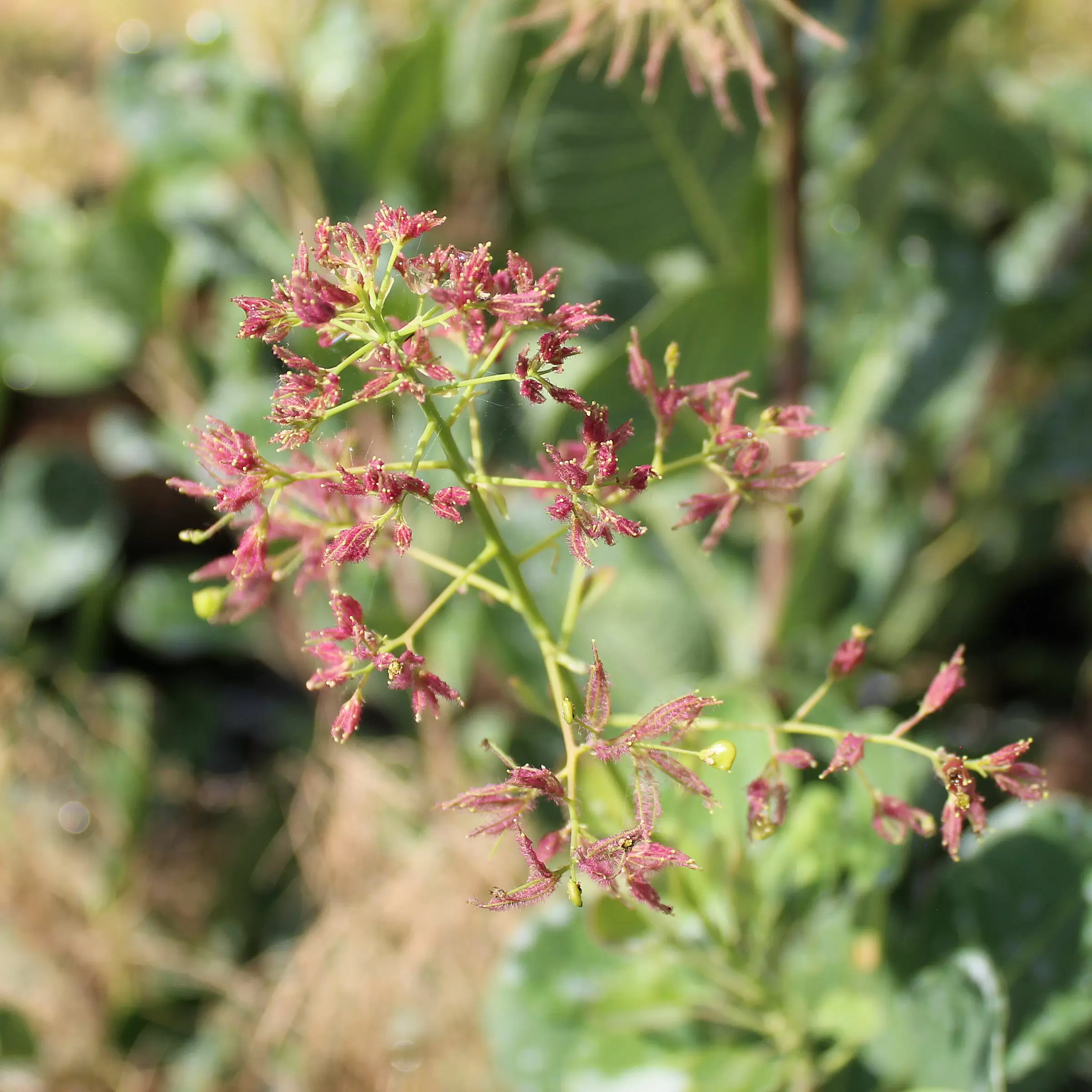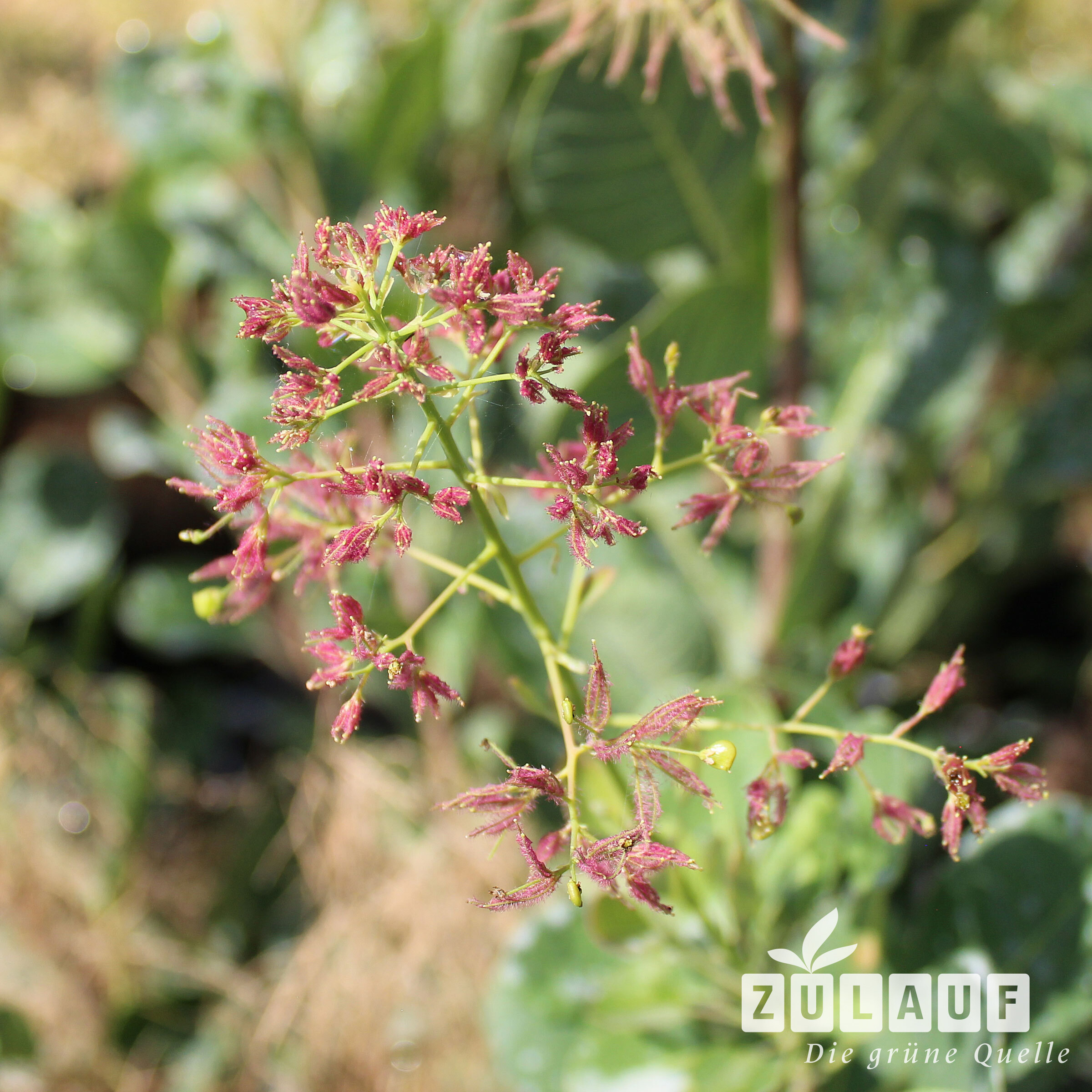 Kleine, gelblichrote Blüten in langen Rispen.