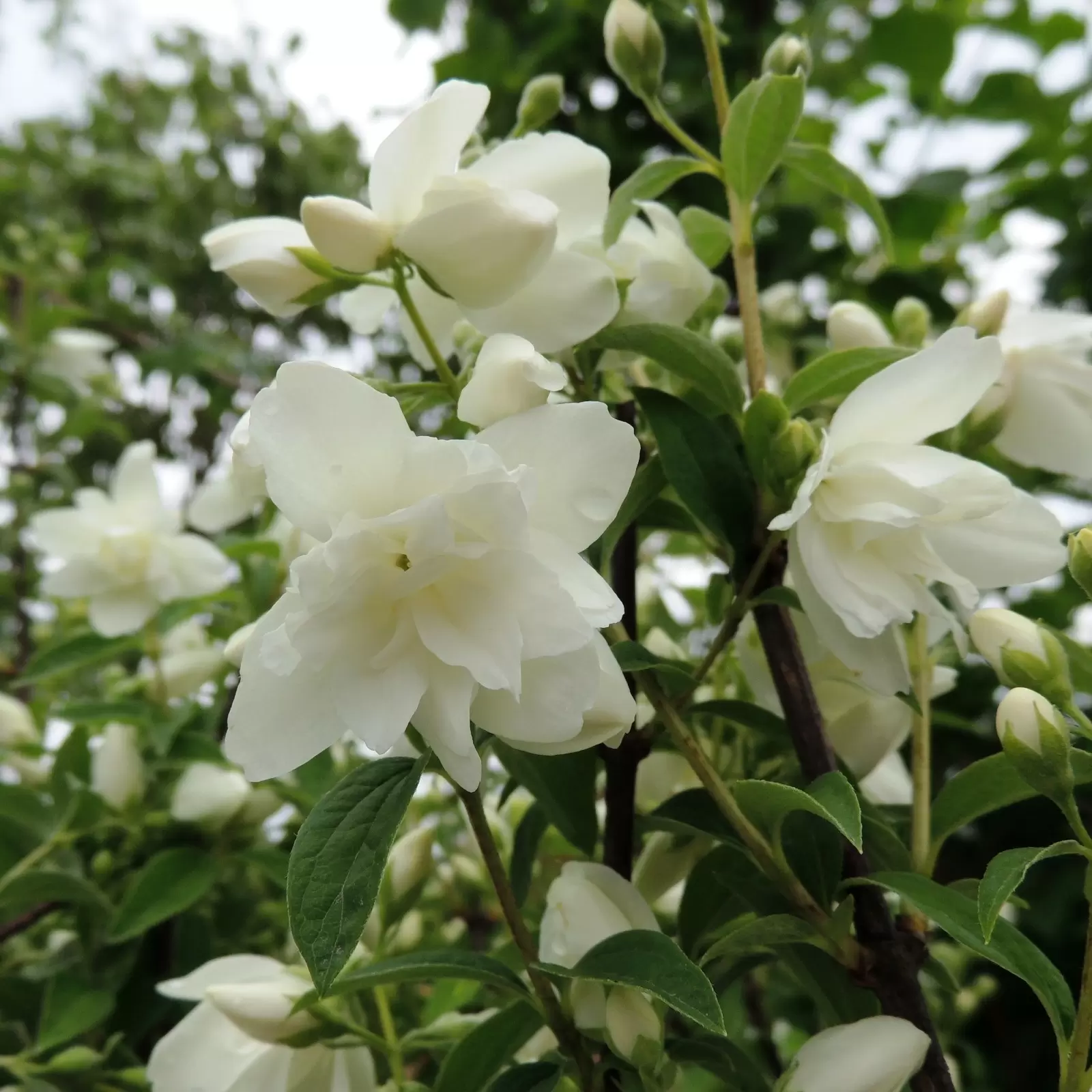 - schneeweisse, dicht gefüllte Einzelblüten, in Trauben wachsend, stark duftend.