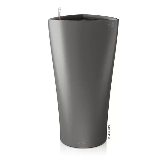 Das Pflanzengefäss Delta ist immer ein Blickfang. Das schmale, aufrechte Gefäss ist nicht rund, sondern hat eine leicht dreieckige Form und verjüngt sich von Oben nach Unten. Wie alle Lechuza-Delta-Gefässe enthält auch dieses ein integriertes Bewässerungssystem mit Wasserstandsanzeiger. Der im Set enthaltene schwarze Pflanzeinsatz kann ohne Schwierigkeiten entfernt werden und erleichtert das Ein- und Umtopfen. Der Blumentopf Delta ist bruchsicher, besteht aus hochwertigem Kunststoff und überzeugt mit geringem Gewicht.
