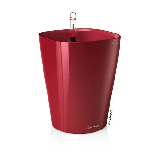 Das Pflanzengefäss Deltini ist die kleine Schwester vom Pflanzengefäss Delta. Dieser kleine Blumentopf erfreut mit hochwertiger Verarbeitung und einer glänzenden Oberfläche. Das Gefäss ist vasenförmig und findet auf jedem Tisch ein Plätzchen. Dank dem integrierten Bewässerungssystem mit Wasserstandsanzeiger ist die eingetopfte Pflanze perfekt umsorgt. Das Lechuza-Deltini-Set enthält nebst dem Pflanzengefäss einen Pflanzeinsatz und einen Wasserstandsanzeiger.