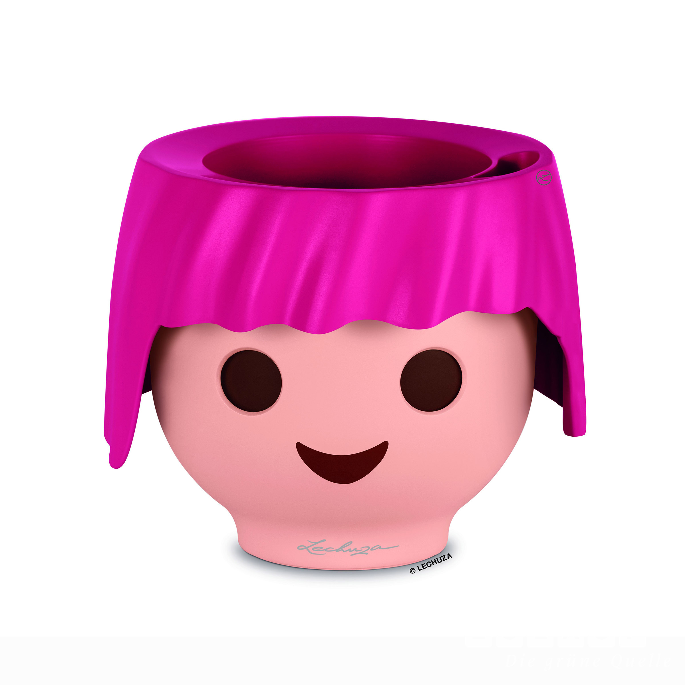 Ojo - das erste Pflanzengefäss im Playmobil-Look. Dieser einzigartige Blumentopf mit farbenfroher Frisur erfreut Kinderherzen und unterstützt kleine Gärtner mit speziellem Bewässerungssystem: Die grossen, runden Augen sind blau, wenn das Wasserreservoir gefüllt ist und werden braun, wenn es sich leert. So wird Gärtnern kinderleicht.