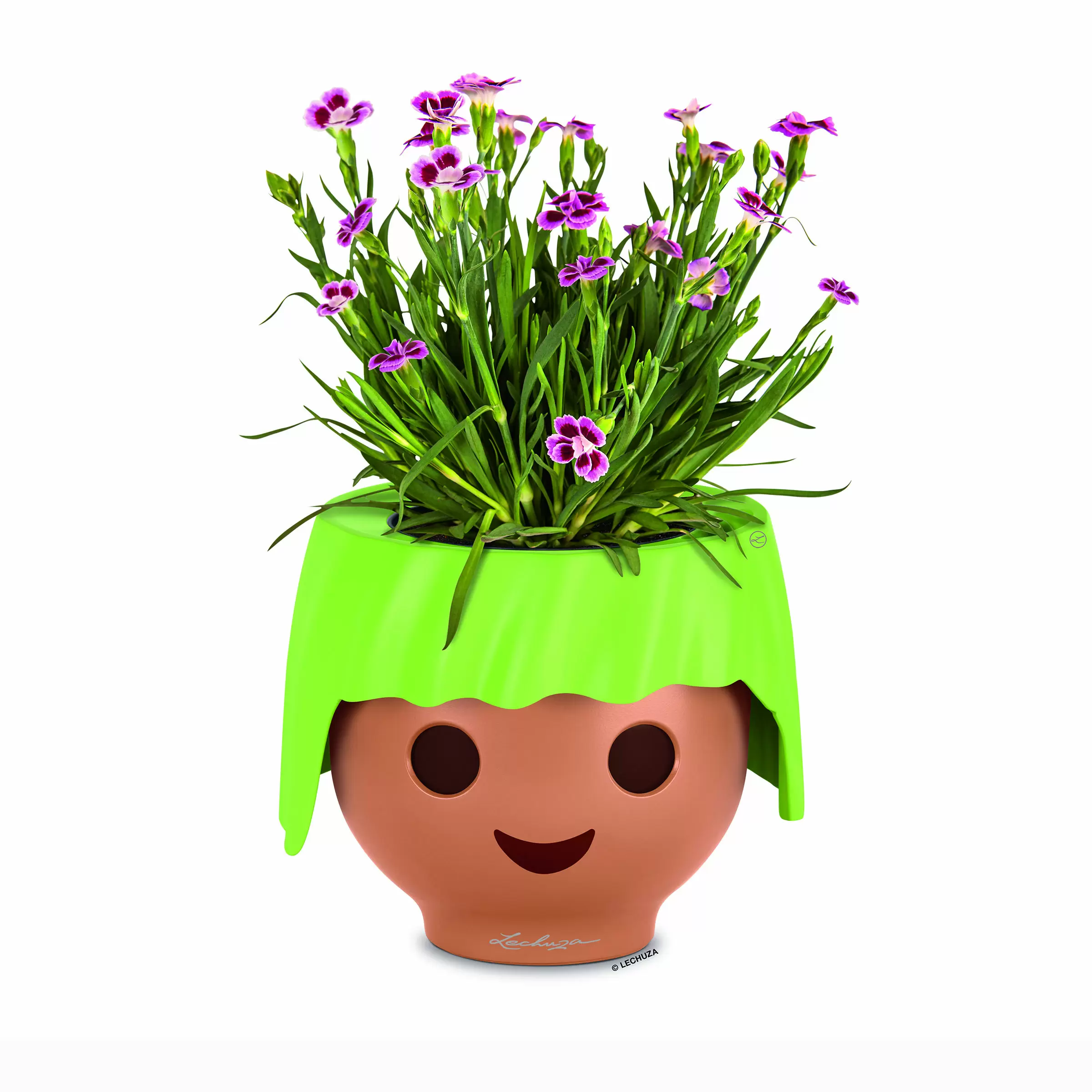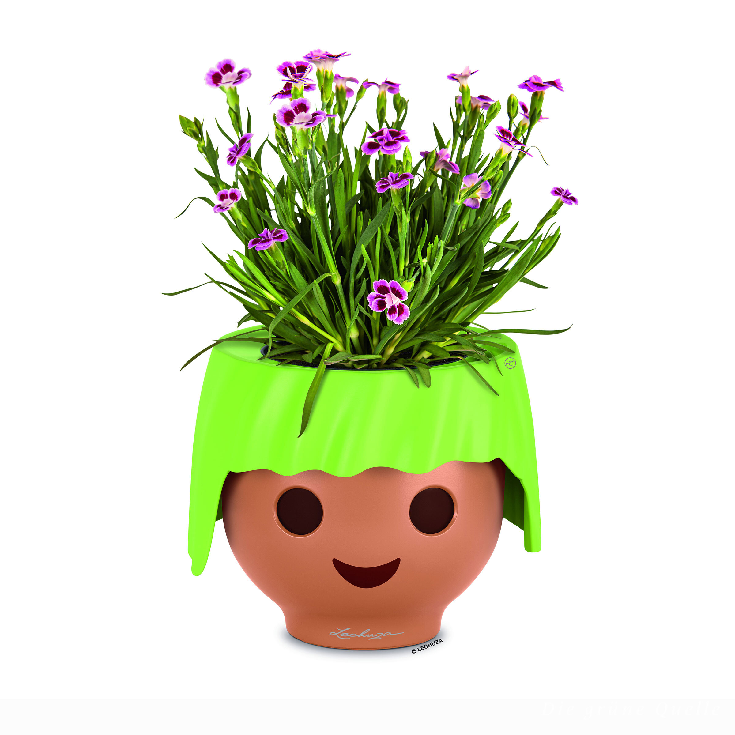 Ojo - das erste Pflanzengefäss im Playmobil-Look. Dieser einzigartige Blumentopf mit farbenfroher, leuchtend grüner Frisur erfreut Kinderherzen und unterstützt kleine Gärtner mit speziellem Bewässerungssystem: Die grossen, runden Augen sind blau, wenn das Wasserreservoir gefüllt ist und werden braun, wenn es sich leert. So wird Gärtnern kinderleicht.