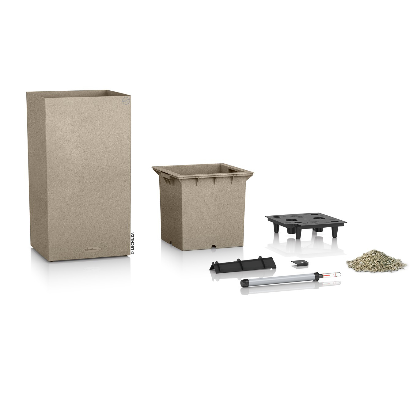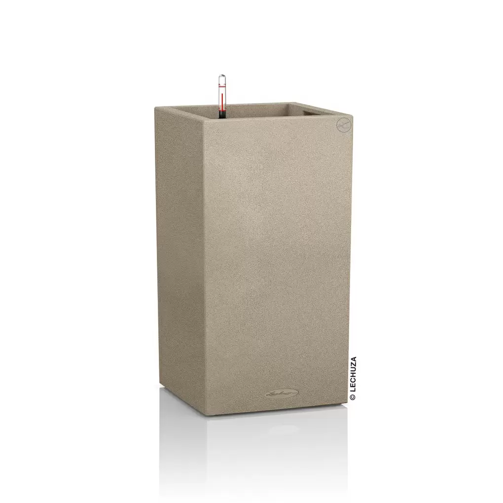 Das aufrechte Pflanzengefäss Canto Stone high erfreut mit moderner Naturstein-Optik. Der Lechuza Blumentopf besteht aus hochwertigem Kunststoff und hat eine angerauhte Oberflächenstruktur. Canto Stone high hat ein eingebautes, innovatives Bewässerungssytem mit praktischem Giessanzeiger. Der enthaltene Pflanzeinsatz lässt sich bequem mit den Tragegriffen entfernen. So können die Pflanzen am Tisch eingepflanzt werden, ohne dass das gesamte Gefäss verschoben werden muss. Das schont den Rücken und macht doppelt Spass.