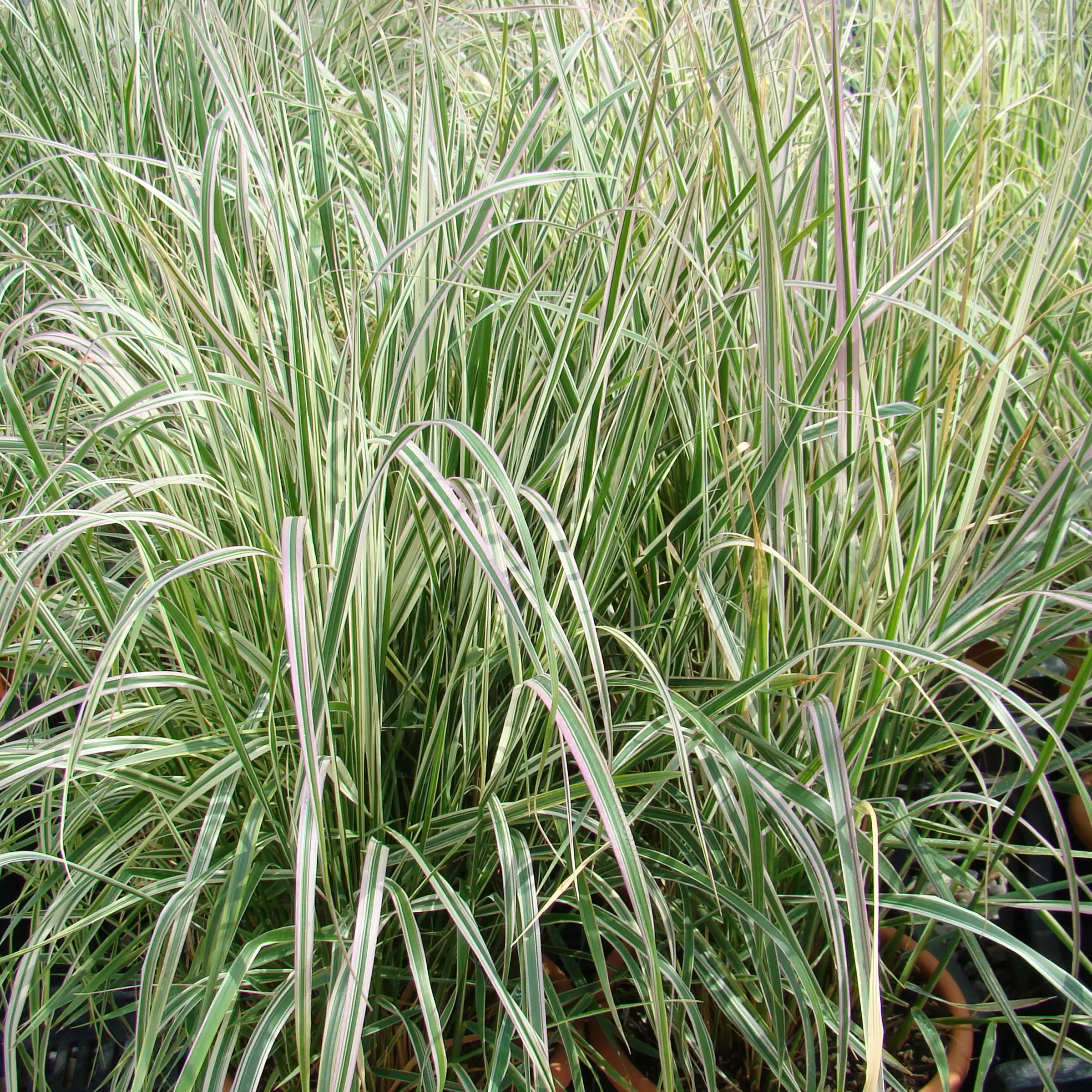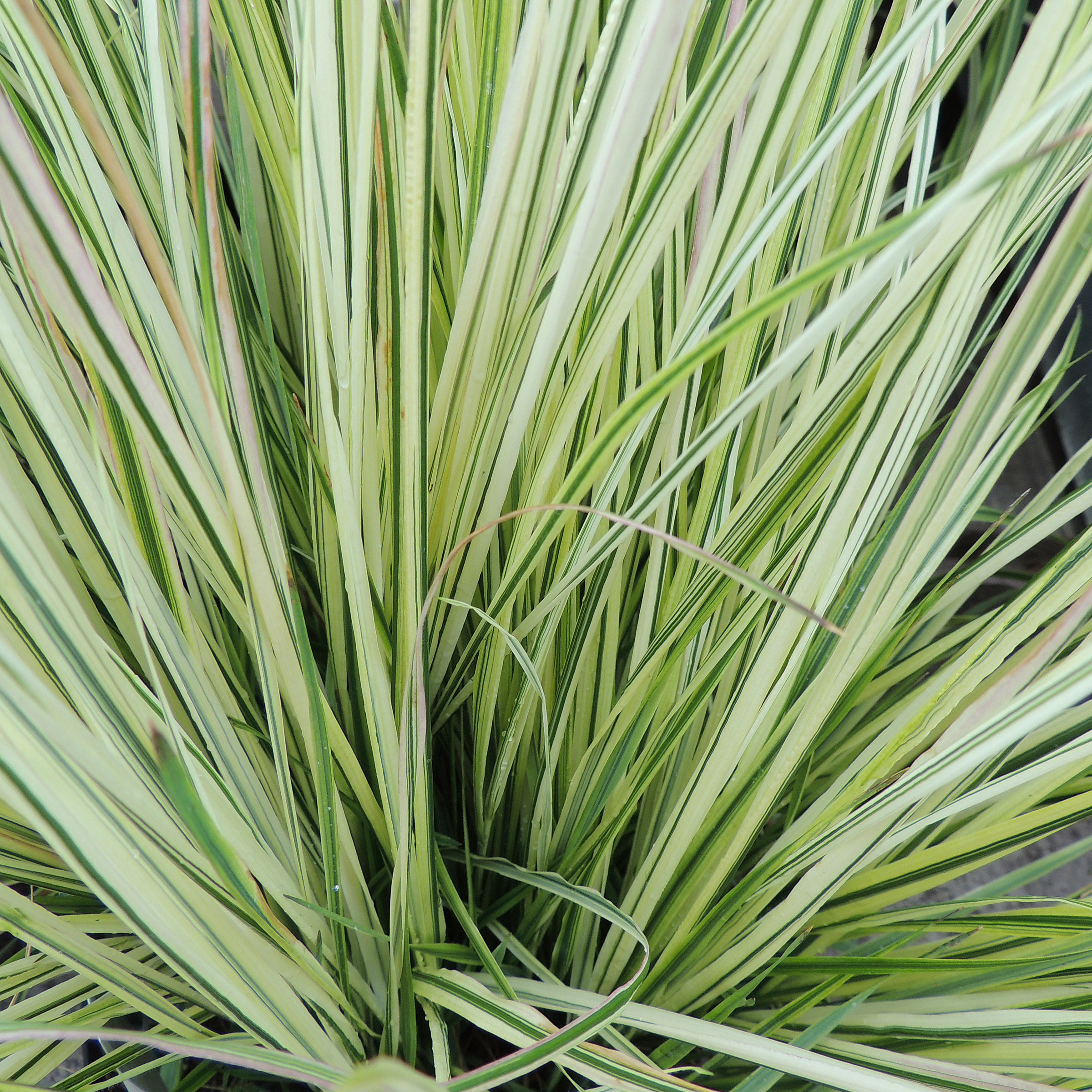 Das Reitgras 'Overdam' bringt feine, rispenförmige, gelbbraune Blüten hervor. Die Blätter sind weiss gestreift und verbreiten im Garten ein interessantes Farbenspiel.