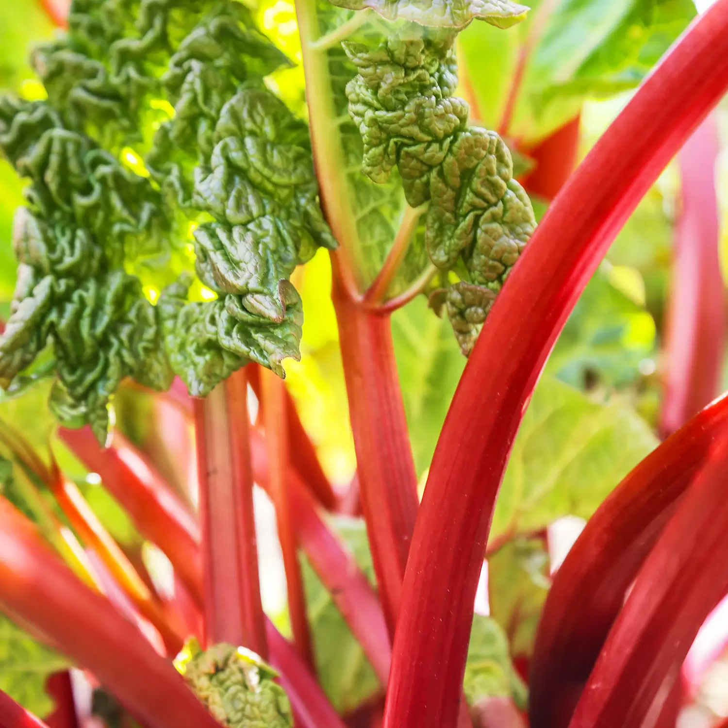 Der Rhabarber 'Livingstone' (Rheum rhabarbarum 'Livingstone') ist eine ertragreiche, immertragende Herbstsorte mit langer Erntezeit. Dank seiner tagneutralen Eigenschaften wächst er auch nach der Sommersonnenwende weiter und ist winterhart.