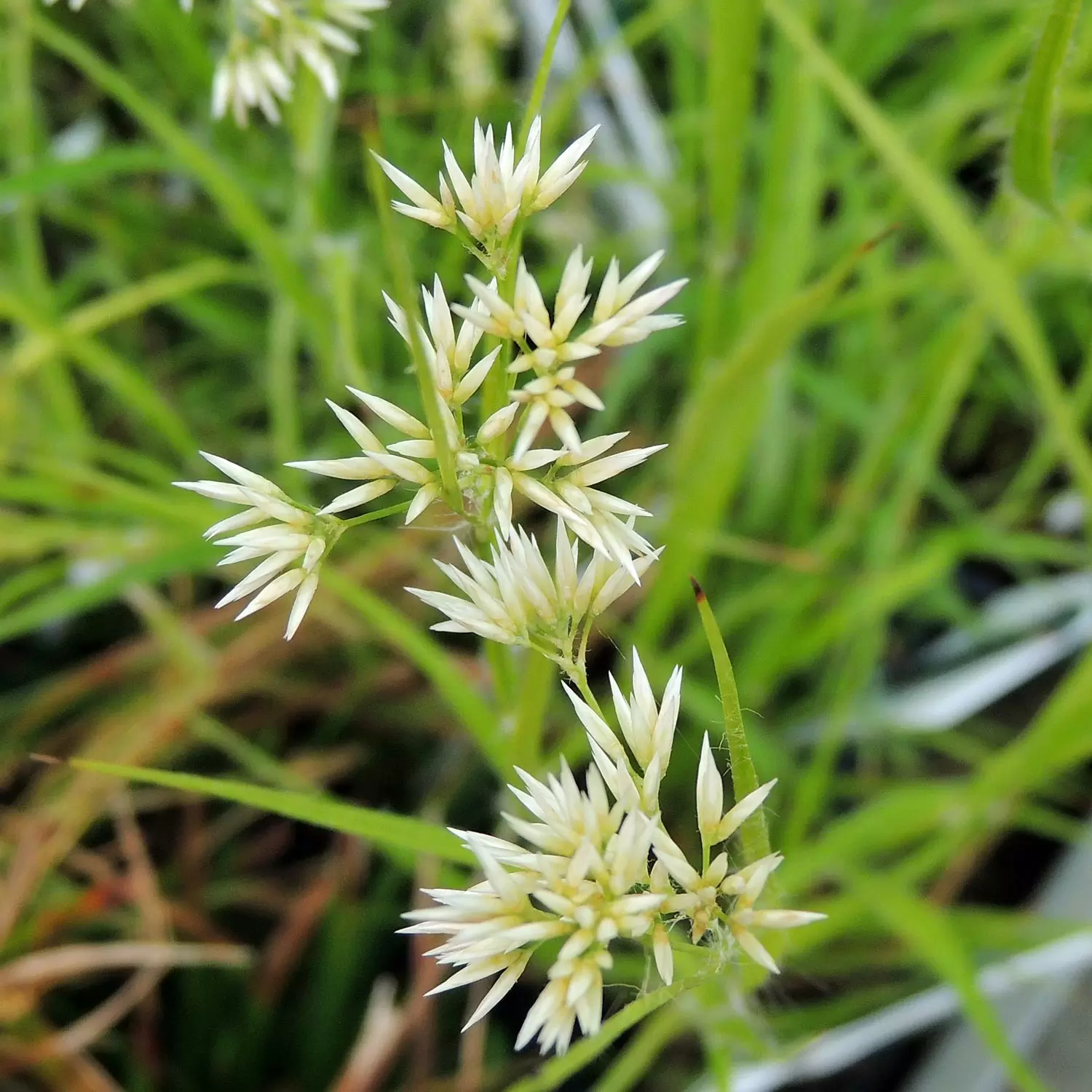 Die einheimische Schneeweisse Hainsimse (Luzula nivea) bildet wunderschöne weisse Blütenbüschel aus. Das Gras ist auch als Schneemarbel bekannt, eignet sich gut als Begleitpflanze und bringt durch seine lockeren Blüten Leichtigkeit in den Garten.