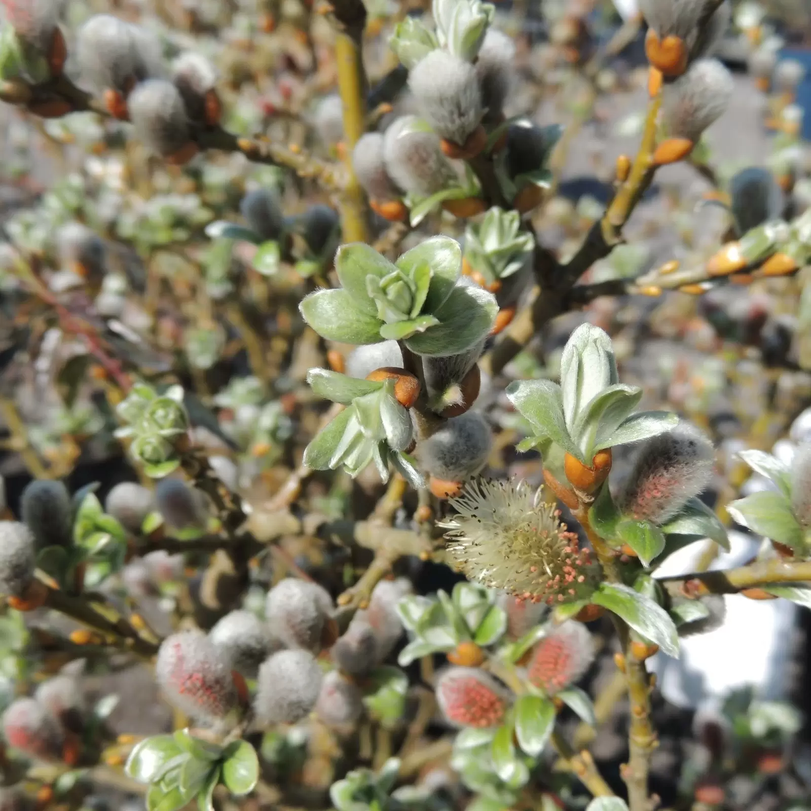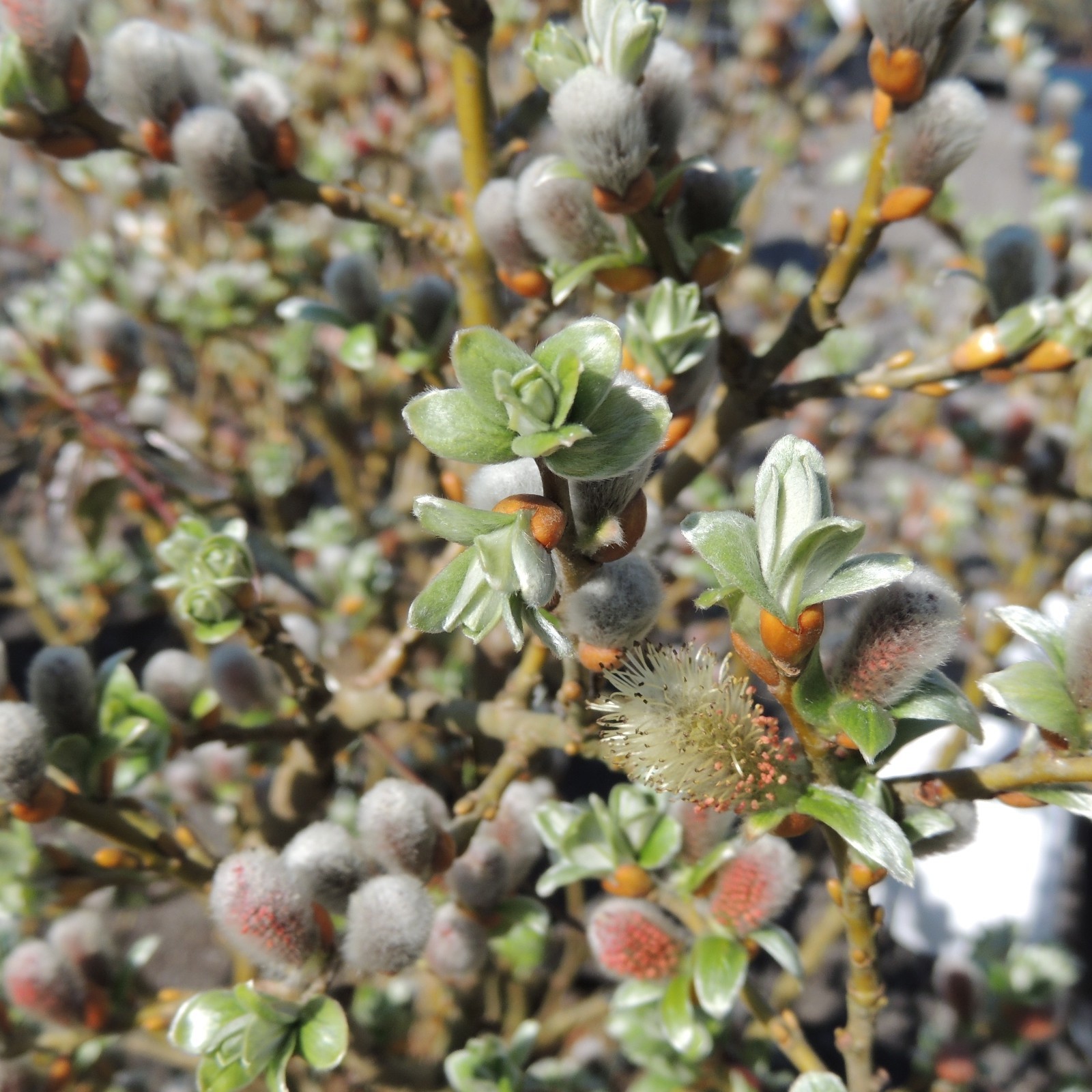 - Silberweisse, grosse Kätzchen, die später mit gelben Pollen übersät sind und zart nach Honig duften.
