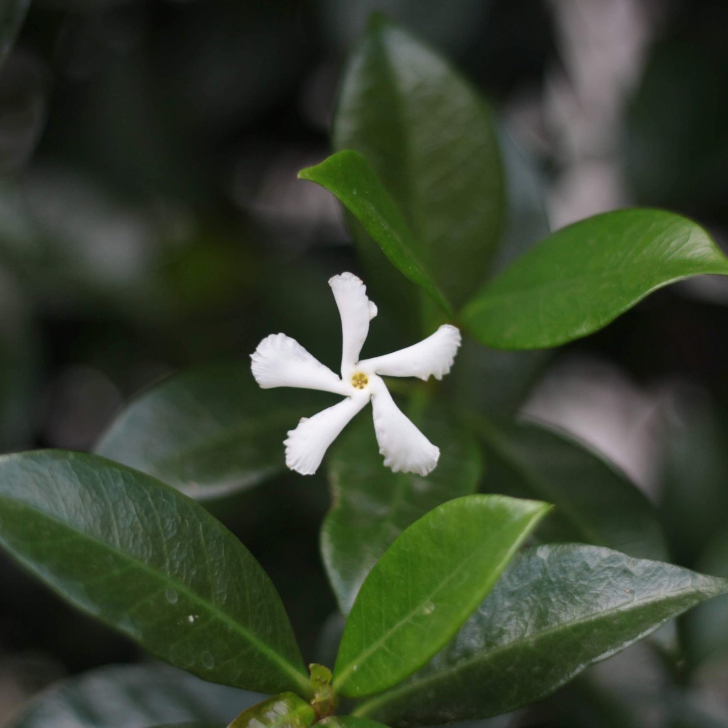 - Weisse, sternförmige Blüten, die einen lieblichen Jasminduft verströmen.
