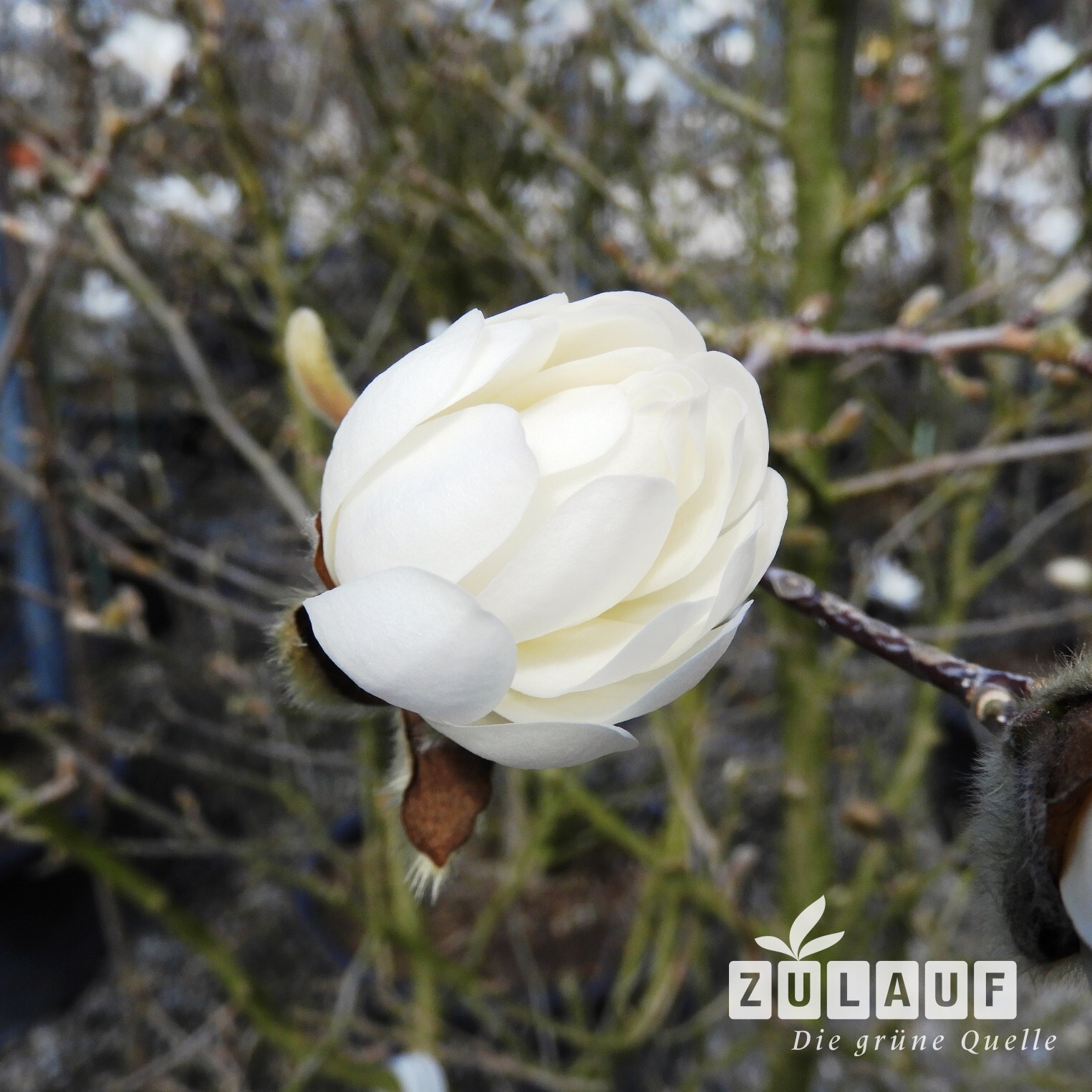 Die weissblühende Stern-Magnolie (Magnolia stellata) kann 2.5 m hoch werden und wächst eher langsam. Die grossen, sternförmigen Blüten erscheinen von März bis April vor dem Laubaustrieb. Sie werden gerne von Bestäubern besucht, die zu dieser Jahreszeit sonst nur wenige Blüten finden.