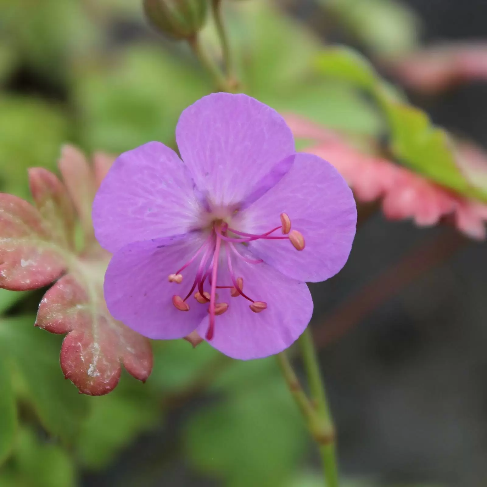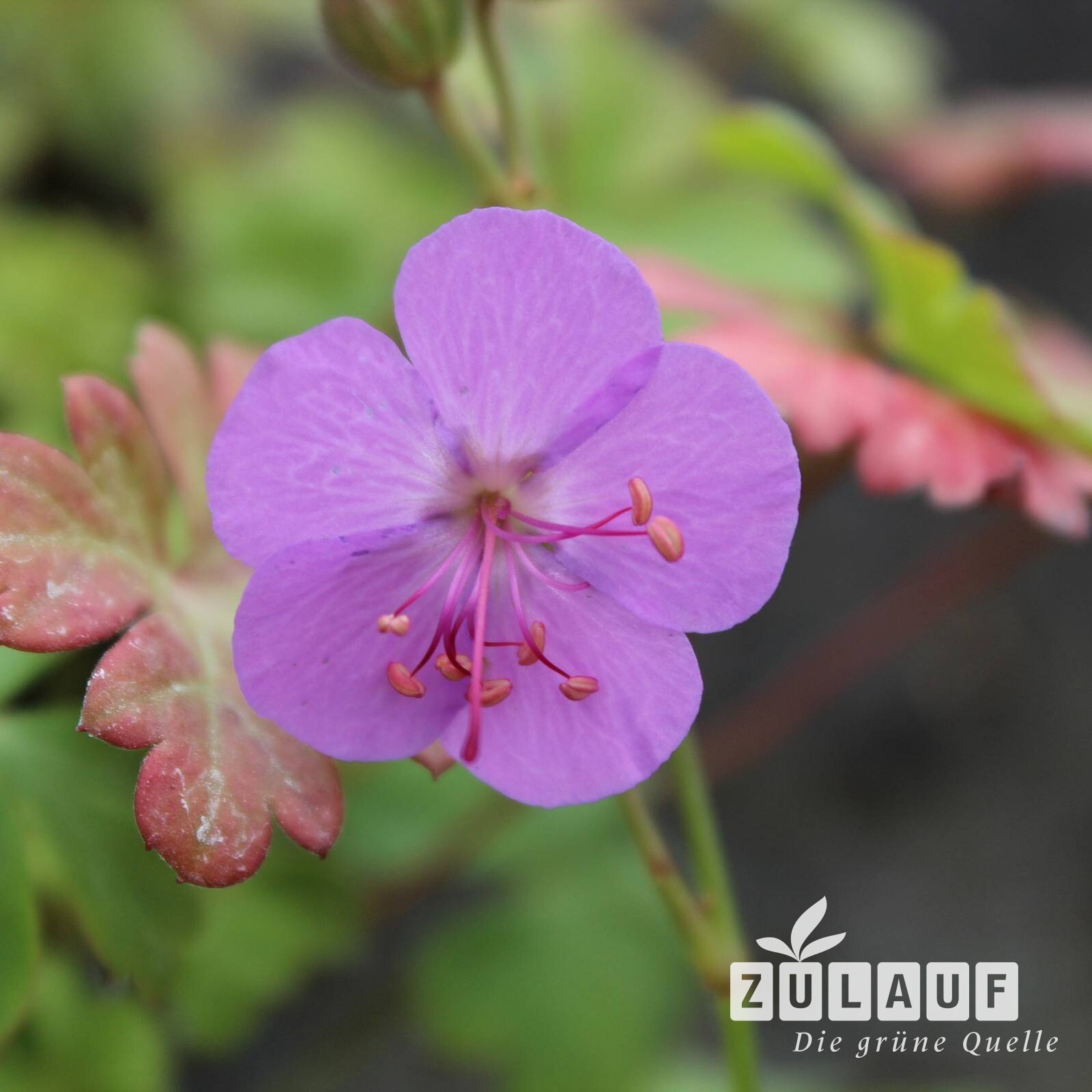 Der Storchschnabel (Geranium x cantabrigiense 'Cambridge') ist eine wunderschöne Kreuzung mit einfachen, dunkelrosafarbenen Schalenblüten und einem aromatischen Laub.