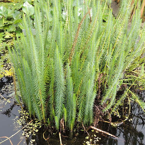 Der einheimische Tannenwedel (Hippuris vulgaris) ist eine äusserst pflegeleichte Teichpflanze. Aus einem zentralen, langgezogenen Wurzelstock wachsen aufrechte, hellgrüne und unverzweigte Triebe, die an Miniatur-Tannen erinnern. Dieser kleine Tannenwald passt in jeden Teich.